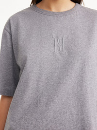 A classic T-shirt, such as the Fayeh design, will last beyond seasons. Made in organic cotton, the T-shirt features an embroidered monogram on its front. Wear yours with everything from miniskirts to tailored trousers and jeans. - Loose fit - Model is 174 cm and is wearing a size S - Embroidered monogram - Wide sleeves - Round neckline DETAILS COLOUR Grey Melange COMPOSITION 100% cotton organic CARE Delicate machine wash at 30°c PRODUCT CODE Style #102154T5M