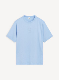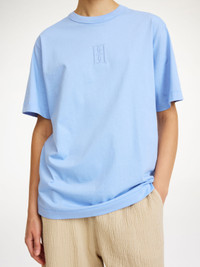 A classic T-shirt, such as the Fayeh design, will last beyond seasons. Made in organic cotton, the T-shirt features an embroidered monogram on its front. Wear yours with everything from miniskirts to tailored trousers and jeans. - Loose fit - Model is 178 cm and is wearing a size S - Round neckline - Embroidered monogram DETAILS COLOUR Blue Iris COMPOSITION 100% cotton organic CARE Delicate machine wash at 30°c PRODUCT CODE Style #1024722T7
