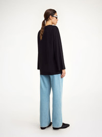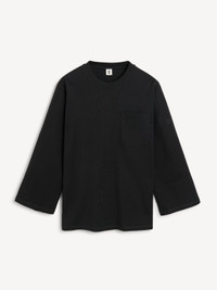 The simply shaped Fayeh T-shirt with long sleeves is a versatile addition to any transitional wardrobe. The organic cotton design has a single front pocket and a small, embroidered monogram on its sleeve. Contrast the relaxed oversize silhouette with the Boshan skirt. - Loose fit - Front pocket - Round neckline - Embroidered monogram DETAILS COLOUR Black COMPOSITION 100% cotton organic CARE Delicate machine wash at 30°c PRODUCT CODE Style #102460050