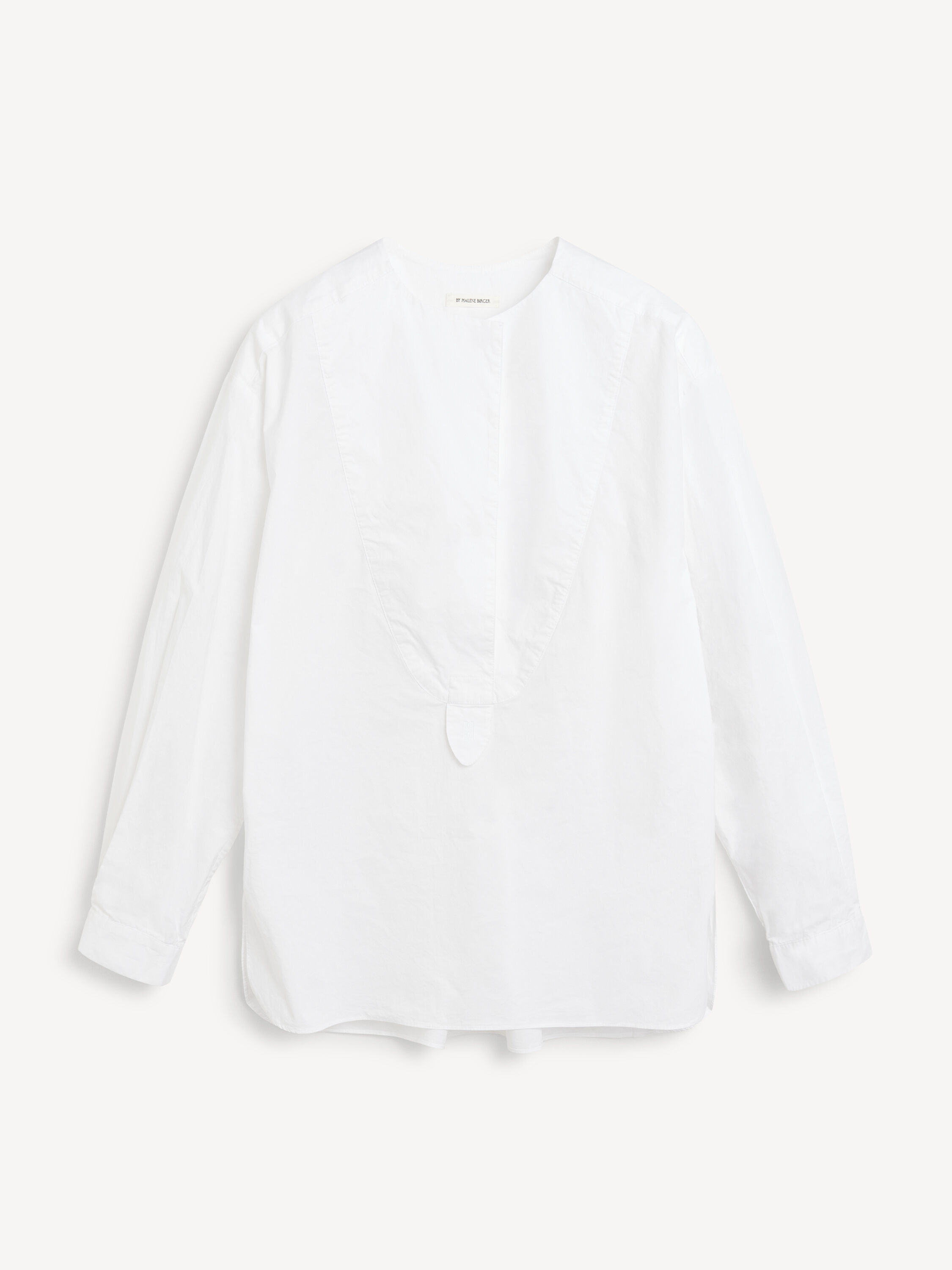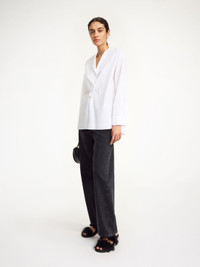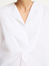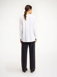 For a timeless wardrobe that will transpire seasons, add the Fayette shirt in organic cotton. Paired neatly with wide-leg trousers, the tunic silhouette is completed with a bib-front, hidden buttons and side seam slits. The best detail? The embroidered monogram on its front. - Oversized fit - Model is 178 cm and is wearing a size 36 - Bib-front - Hidden buttons - Tunic silhouette - Side slits - Embroidered monogram DETAILS COLOUR Pure White COMPOSITION 100% cotton organic CARE Wash at 30°c PRODUCT CODE Style #103138090