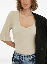 flared ribbed top Highlights - Light beige - Ribbed knit - Scoop neck - Three-quarter length flared sleeves Imported Composition TENCEL™ Lyocell (LENZING) 100% Washing instructions Read Manufacturer Guidelines