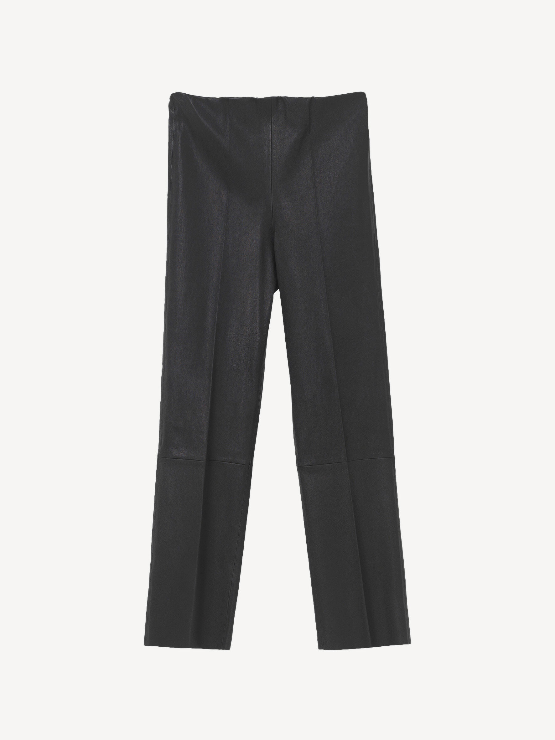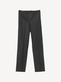 Cropped at the ankle and set on a flexible, elasticated waist, these leather trousers have universally flattering straight legs. They have pressed seams down the front and sit mid waist. Wear yours with everything from shirts to knitwear. - Slim fit - Model is 175 cm and is wearing a size 36 - By purchasing this product, you are supporting responsible leather manufacturing via the Leather Working Group - Unfinished hems - Unlined DETAILS COLOUR Black COMPOSITION 100% lamb leather CARE Professional leather dry clean only PRODUCT CODE Style #101668050