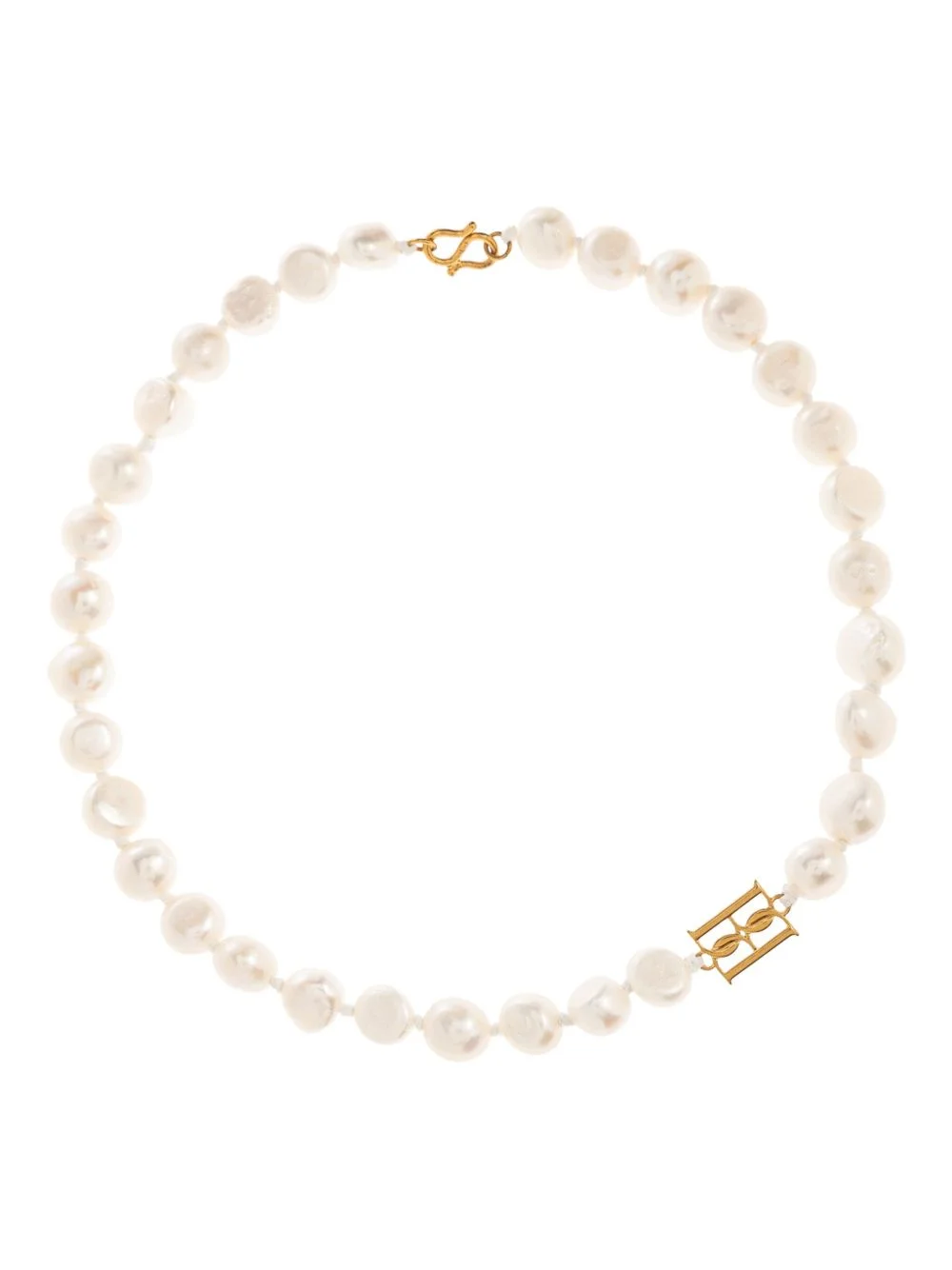 freshwater-pearl necklace Highlights - White - Freshwater pearls - Gold-tone clasp - Knotted detailing - Normal everyday use and external agents may reduce the lustre of gemstones and gold surfaces. to maintain, use specific, non-abrasive products specially meant for cleaning jewellery. - Pearls should be the last thing that you put on in the morning and the first thing you take off at night. avoid contact with perfumes or creams, and simply wipe with a soft cloth to clean. Imported