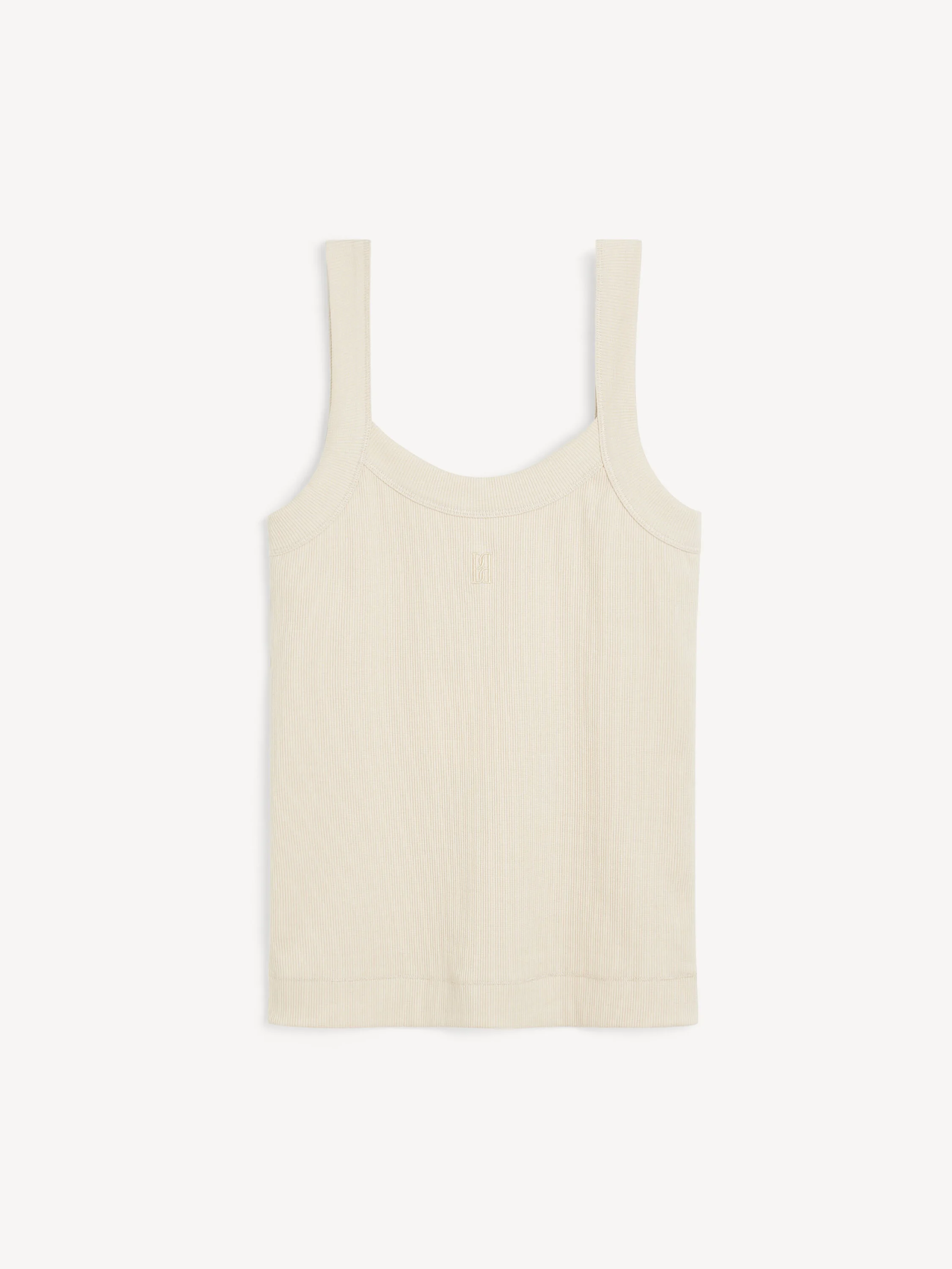 A versatile minimalistic tank top – such as the Frillio design – will slot right into any modern woman’s wardrobe. Made in an organic cotton mix with stretch, the easy silhouette falls from wide straps and has a low round neckline. Notice the small, embroidered monogram on its front. - Slim fit - Wide straps - Low neckline - Embroidered monogram DETAILS COLOUR Oyster Gray COMPOSITION 98% cotton organic, 2% elastane CARE Wash at 30°c PRODUCT CODE Style #1031071CT