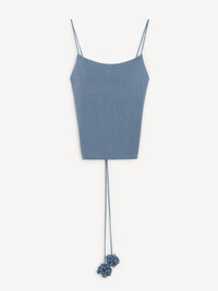 Minimalist ease at the front and artisanal details at the back – the Gillian top is a fresh addition to any wardrobe. The compact viscose design has an open back, where its adjustable straps, adorned with floral appliques, are tied to your preference. For a coordinating set that works for summer getaways and soirees alike, wear it with the Roz skirt. - Slim fit - Model is 175 cm and is wearing a size S - Open back - Adjustable straps - Floral details - Straight neckline - Contains LENZING™ ECOVERO™ viscose fibers - "LENZING™ and ECOVERO™ are trademarks of Lenzing AG DETAILS COLOUR Grisaille COMPOSITION 87% viscose (lenzing (TM) ecovero (TM) ), 13% polyamide CARE Hand wash PRODUCT CODE Style #103064056