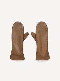 The Ginnyl leather mittens embody the ultimate timeless winter accessory. Shaped from buttery soft leather with an elastic band for a better fit, the design effortlessly combines warmth with ease. They will add relaxed charm to all your winter outerwear. - Model is 173 cm and is wearing a size S - Embroidered monogram - Elastic band for better fit - By purchasing this product, you are supporting responsible leather manufacturing via the Leather Working Group DETAILS COLOUR Shitake COMPOSITION 100% sheep leather CARE No Wash PRODUCT CODE Style #1020861DJ