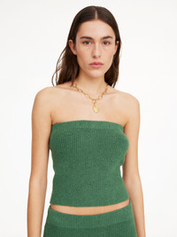 The effortless mood of the Giovania top makes it ideal to use as the temperatures rise. Crafted in a rib knitted fabrication, the bandeau top has an elastic band for easy wearing. Pair with the matching Kyara skirt for both city strolls and cocktail hour. - Regular fit - Model is 174 cm and is wearing a size S - Made from LENZING™ TENCEL™ Lyocell - "LENZING™ and TENCEL™ are trademarks of Lenzing AG. - Bandeau - Elastic band DETAILS COLOUR Comfrey COMPOSITION 64% viscose (lenzing (TM) ecovero (TM) ), 28% polyamide recy cled, 8% spandex CARE Hand wash PRODUCT CODE Style #1021144EY