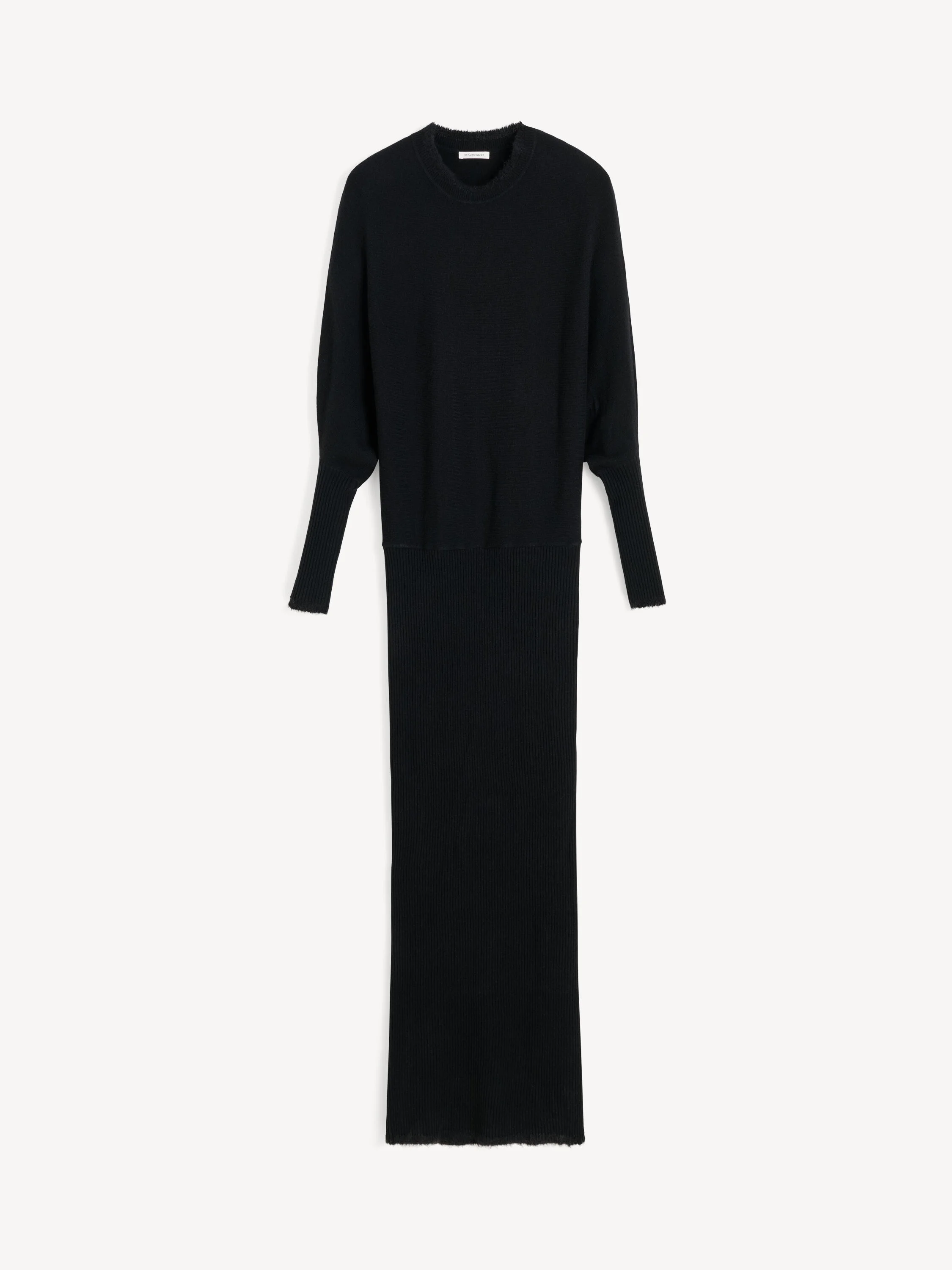 With its voluminous upper and flattering rib bottom, the Gislaine dress plays with proportions. The maxi design, which slips right on, is made in a soft wool and yak mix. It’s detailed with dolman sleeves and a ruffled round neckline. - Regular fit - Model is 178 cm and is wearing a size S - Rib bottom - Ruffled round neckline - Dolman sleeves - Loose upper - This product contains 82 % RWS wool, certified by Control Union, CU 877742. The Responsible Wool standard (RWS) verifies animal welfare and land management requirements and tracks it from the farm to the final product DETAILS COLOUR Black COMPOSITION 78% wool, 14% yak, 8% elastane CARE Hand wash PRODUCT CODE Style #103584050