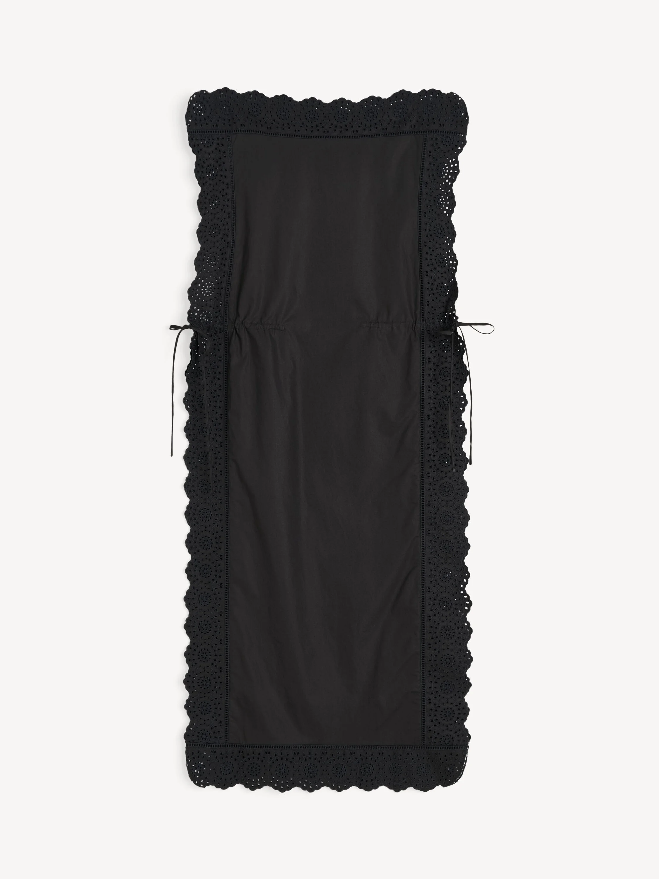 The feminine Gustava top stands out with its maxi length and delicate broderie anglaise trims – a feminine combination that speaks volumes. Made from organic cotton, the long, square silhouette is complete with adjustable waist ties. Wear over the matching Gretana trousers. - Loose fit - Model is 177 cm and is wearing a size 36 - Maxi length - Square silhouette - Broderie Anglaise detailing - Adjustable waist ties - Dropped arm opening - High slits - Unlined DETAILS COLOUR Black COMPOSITION 100% cotton organic CARE Wash at 30°c PRODUCT CODE Style #103910050