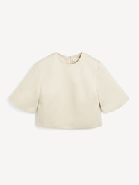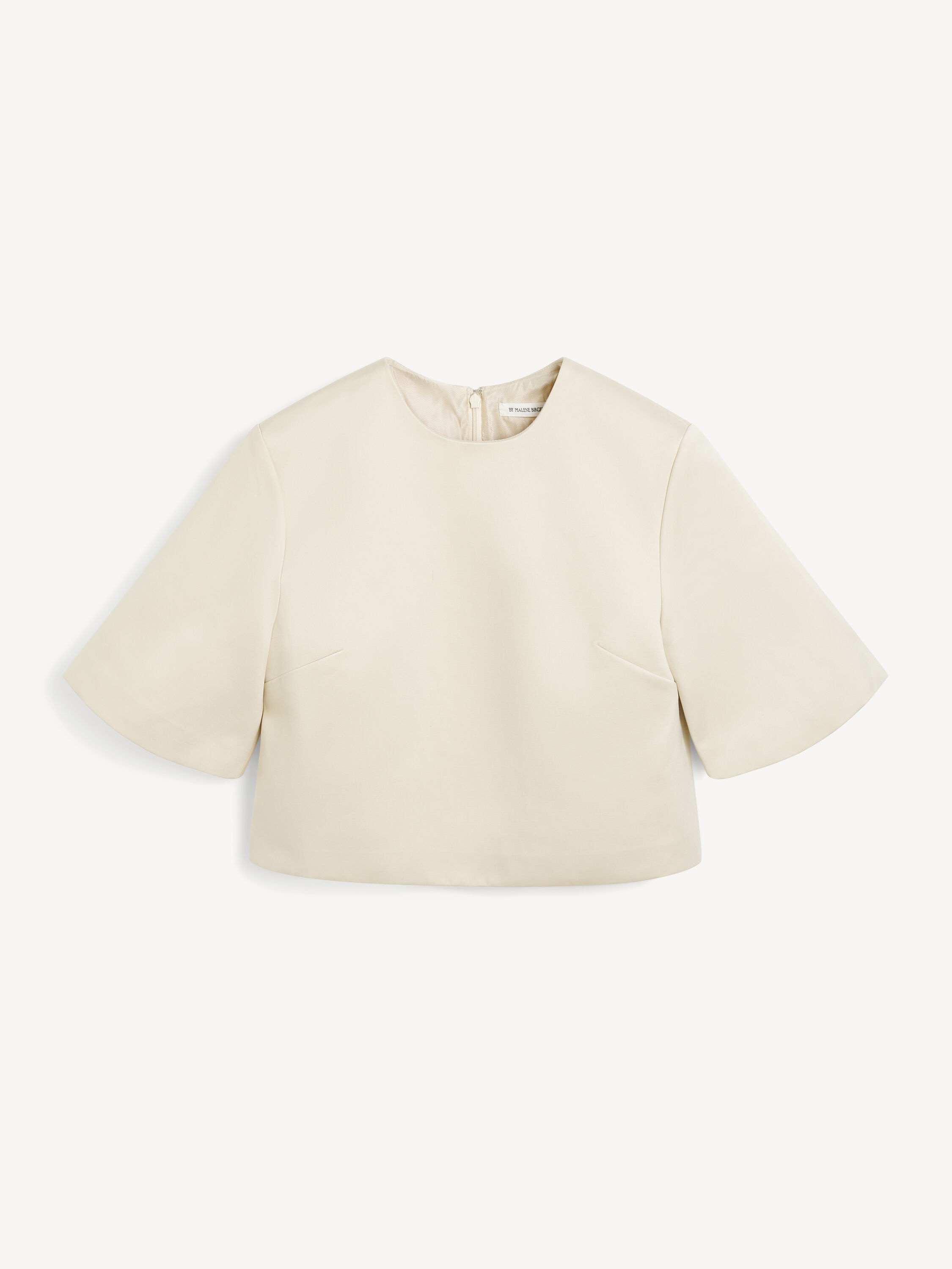 Soothing in hue and timeless in silhouette, the Hania top will fit right into your year-round edit. The slightly cropped T-shirt silhouette closes with a zipper and hook in the back. Pair with the Hermie mini skirt. - Regular fit - Model is 175 cm and is wearing a size 36 - Cropped silhouette - Round neckline - Zip and hook closure DETAILS COLOUR Oyster Gray COMPOSITION 59% polyester recycled, 41% cotton CARE Delicate machine wash at 30°c PRODUCT CODE Style #1030381CT