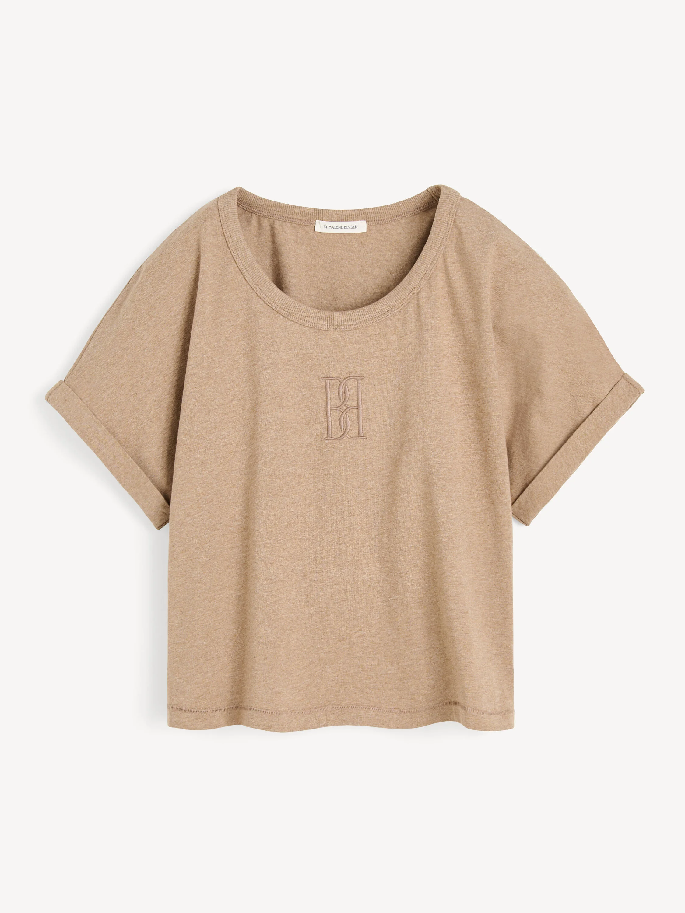 Classic T-shirts that don’t compromise on comfort or versatility are essential in any year-round wardrobe – the Hedalia design offers both. Crafted in organic cotton to a slightly cropped silhouette and with folded sleeves, you will choose this T-shirt on repeat. - Regular fit - Model is 179 cm and is wearing a size S - Slightly cropped silhouette - Embroidered monogram - Folded T-shirt sleeves DETAILS COLOUR Kelp COMPOSITION 100% cotton organic CARE Delicate machine wash at 30°c PRODUCT CODE Style #1022951Y7