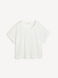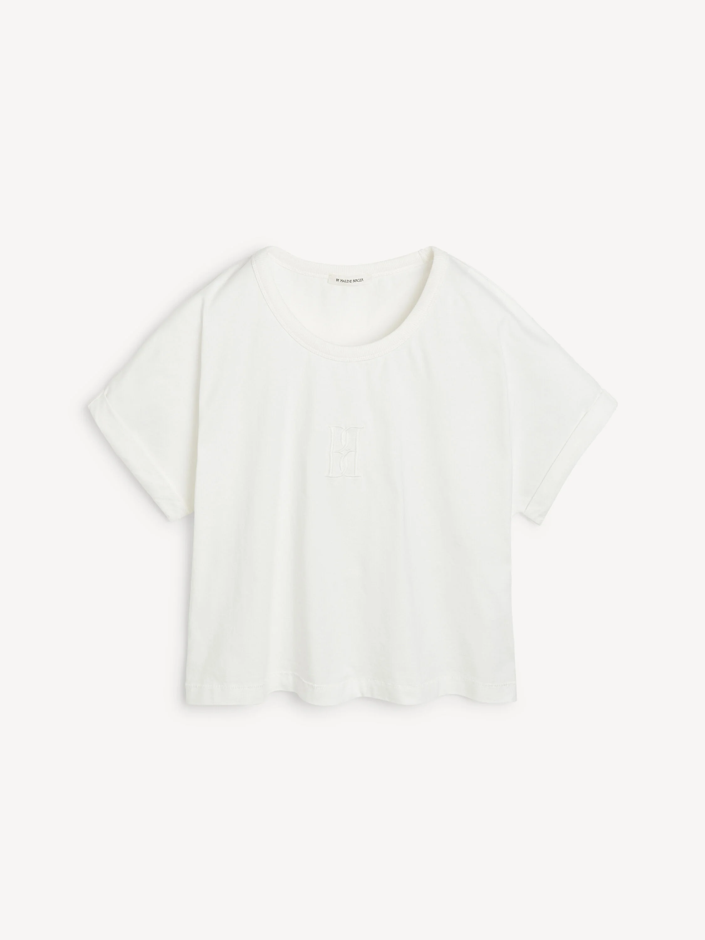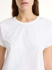 Classic T-shirts that don’t compromise on comfort or versatility are essential in any year-round wardrobe – the Hedalia design offers both. Crafted in organic cotton to a slightly cropped silhouette and with folded sleeves, you will choose this T-shirt on repeat. - Regular fit - Model is 173 cm and is wearing a size S - Slightly cropped silhouette - Embroidered monogram - Folded T-shirt sleeves DETAILS COLOUR Soft White COMPOSITION 100% cotton organic CARE Delicate machine wash at 30°c PRODUCT CODE Style #10229503Z