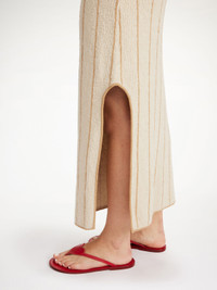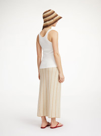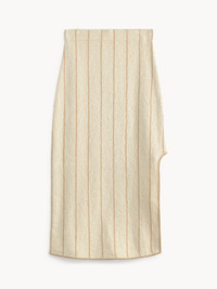 A well-curated wardrobe starts with tactile pieces that promise depth and texture – such as the Hercula maxi skirt. Made in a flattering silhouette, the design features contrasted stripes and hems, a large slit and an elastic waistband. Pair with the matching Zoita blouse. - Regular fit - Model is 171 cm and is wearing a size S - Elastic waistband - Curved slit - Contrast hem DETAILS COLOUR Oyster Gray COMPOSITION 40% cotton organic, 35% wool, 24% polyamide recycled, 1% ela stane CARE Hand wash PRODUCT CODE Style #1021901CT
