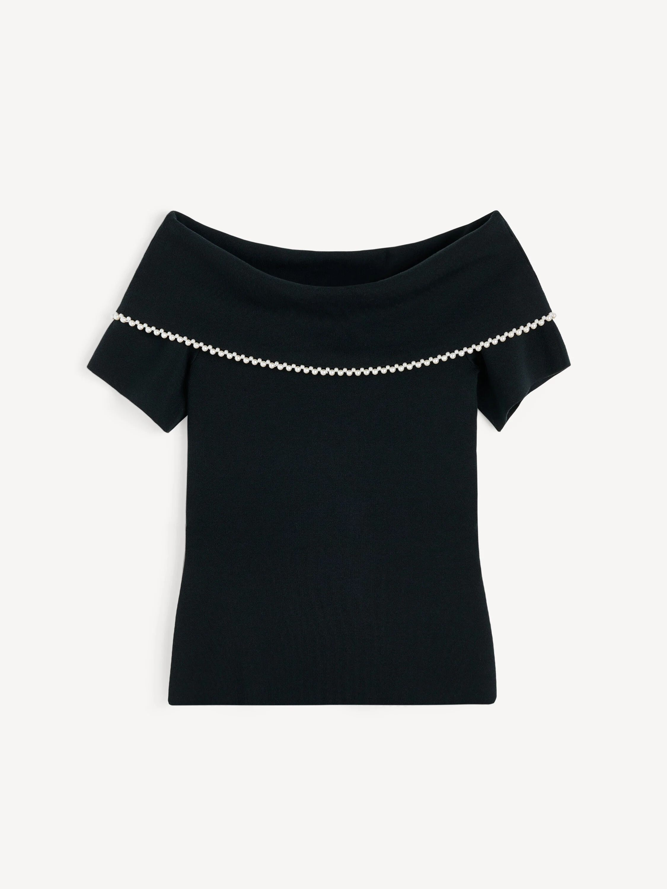The Hetha top encapsulates the feminine elegance that By Malene Birger is known for. With its slim off-shoulder silhouette and faux pearl hem, it will instantly add sophistication year-around. Wear with voluminous bottoms to contrast the slim shape. - Slim fit - Model is 178 cm and is wearing a size S - Off shoulder silhouette - Stretch fabrication - Faux pearl details - Short sleeves DETAILS COLOUR Black COMPOSITION 91% lyocell (tencel (TM)), 9% elastane CARE Delicate machine wash at 30°c PRODUCT CODE Style #103451050