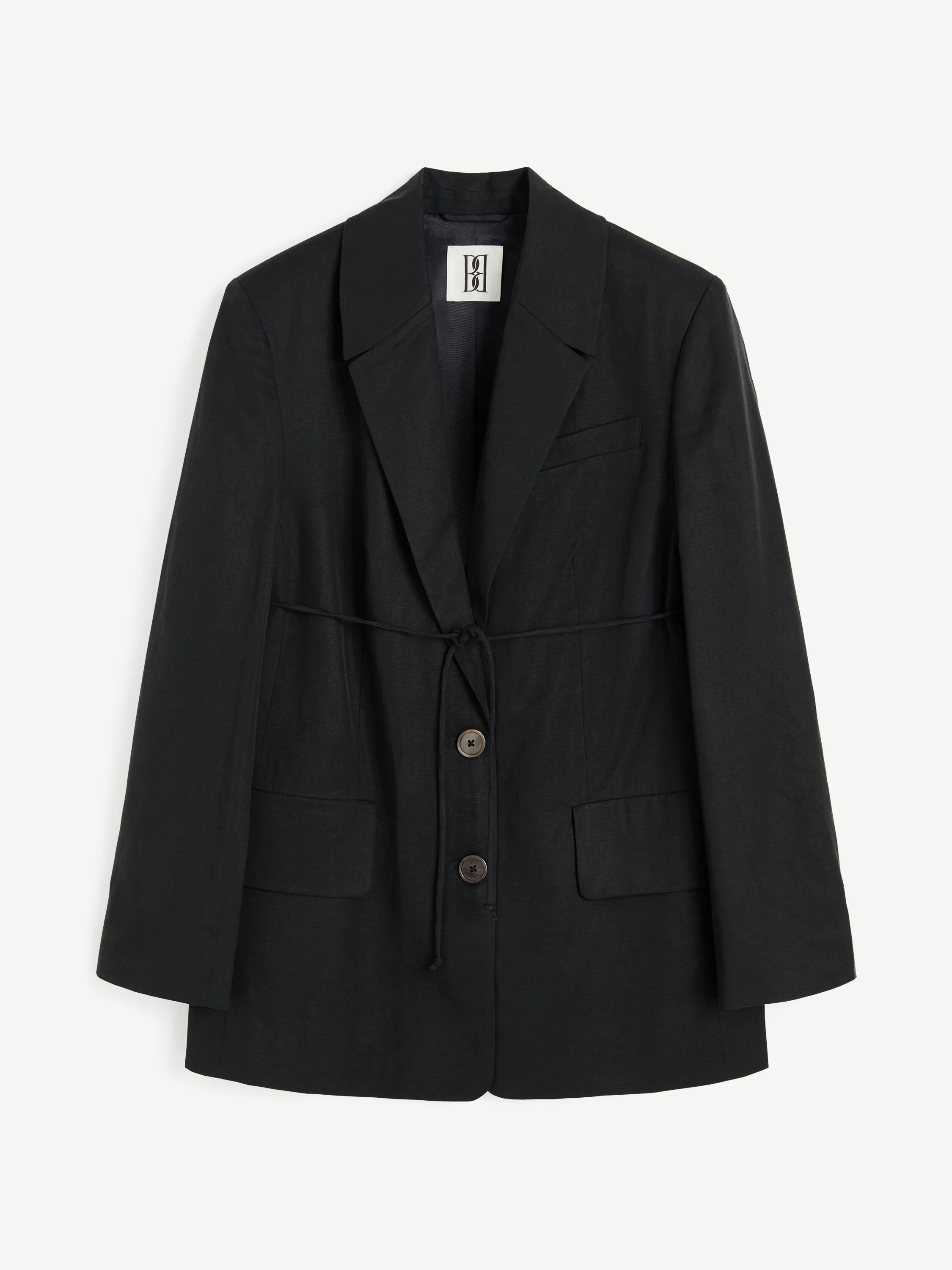 Combining traditional tailoring with a feminine allure, The Hilao blazer is usable throughout the entire year – for work, weekend and beyond. The classic design has a single-breasted silhouette, front pockets, button closure and an adjustable – and fully detachable – waistbelt. - Regular fit - Model is 177 cm and is wearing a size 36 - Single-breasted - Button closure - V-neck - Notched lapels - Double vent - Adjustable waist belt - Inside pocket - Fully lined DETAILS COLOUR Black COMPOSITION 83% lyocell (tencel (TM)), 17% linen CARE Delicate machine wash at 30°c PRODUCT CODE Style #103466050