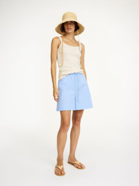 Warmer temperatures call for bare legs and breezy fabrications; the Ifeions shorts offer both. Made from organic cotton, the hassle-free silhouette is detailed with an elastic waistband and adjustable ties. Contrast its relaxed mood by pairing with a blouse or a blazer. - Loose fit - Model is 175 cm and is wearing a size 36 - Elastic waistband - Adjustable ties - Side pockets DETAILS COLOUR Blue Iris Stripe Small COMPOSITION 100% cotton organic CARE Wash at 30°c PRODUCT CODE Style #103189QR3