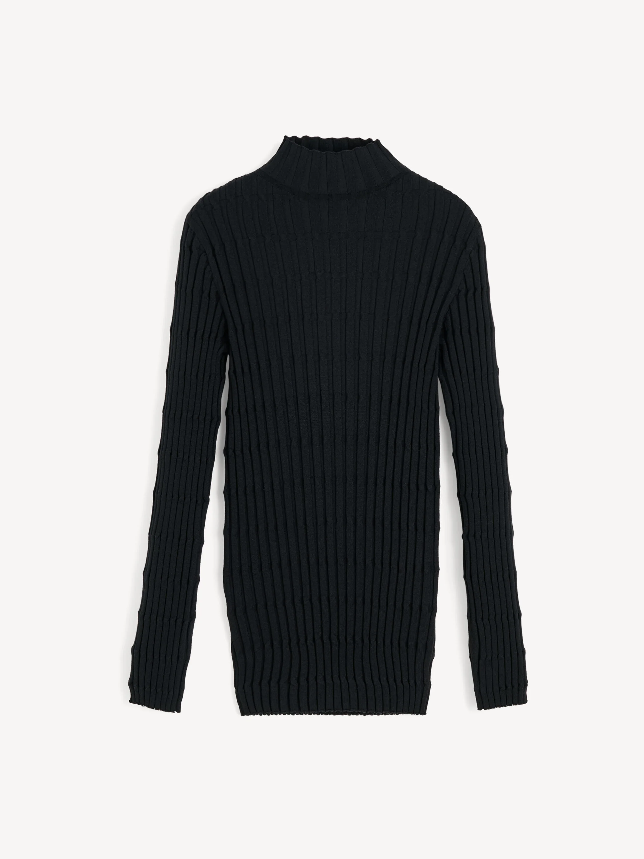 A versatile layer for the fluctuating weather, the Inger sweater is made in a warm merino mix. It’s detailed with wide rib, long sleeves and a mock neck. Wear with voluminous bottoms to add contrast to the fitted silhouette. - Regular fit - Model is 178 cm and is wearing a size S - Tight silhouette - Stretch fabrication - Long sleeves - Mock neck - This product contains 85 % RWS wool, certified by Control Union, CU 877742. The Responsible Wool standard (RWS) verifies animal welfare and land management requirements and tracks it from the farm to the final product DETAILS COLOUR Black COMPOSITION 85% wool - merino, 15% elastane CARE Hand wash PRODUCT CODE Style #103440050