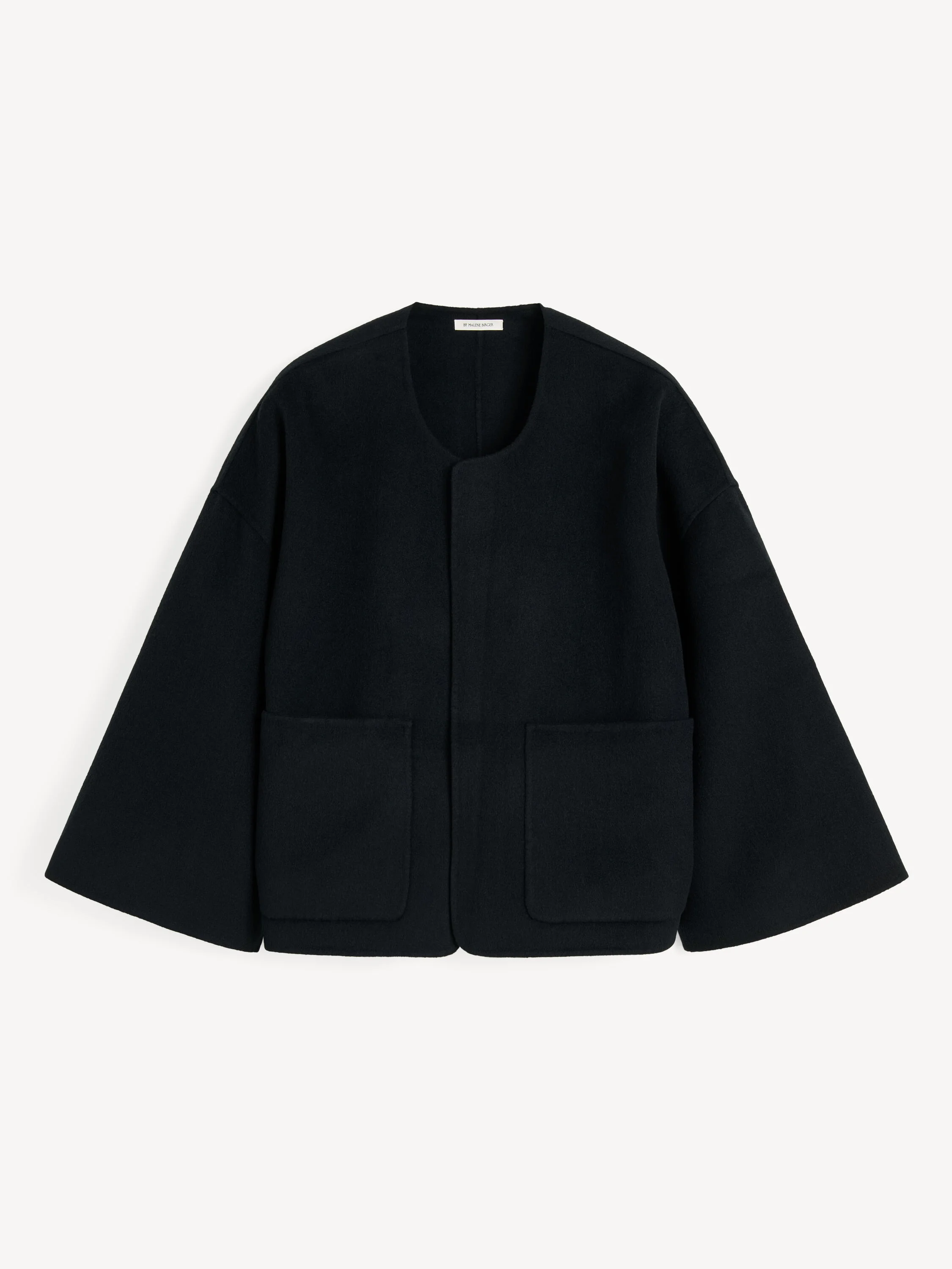 A sophisticated wool jacket, such as the Jacquie design, is key to transitional dressing. Both fresh and feminine, the unlined jacket features two large front pockets. Wear over every outfit this season — and the next. - Loose fit - Model is 179 cm and is wearing a size 36 - Large front pockets - Dropped shoulders - Unlined - Wide sleeves - No closure - This product contains 100% RWS wool, certified by Control Union, CU 877742. The Responsible Wool standard (RWS) verifies animal welfare and land management requirements and tracks it from the farm to the final product DETAILS COLOUR Black COMPOSITION 100% wool CARE Dry clean only PRODUCT CODE Style #103414050