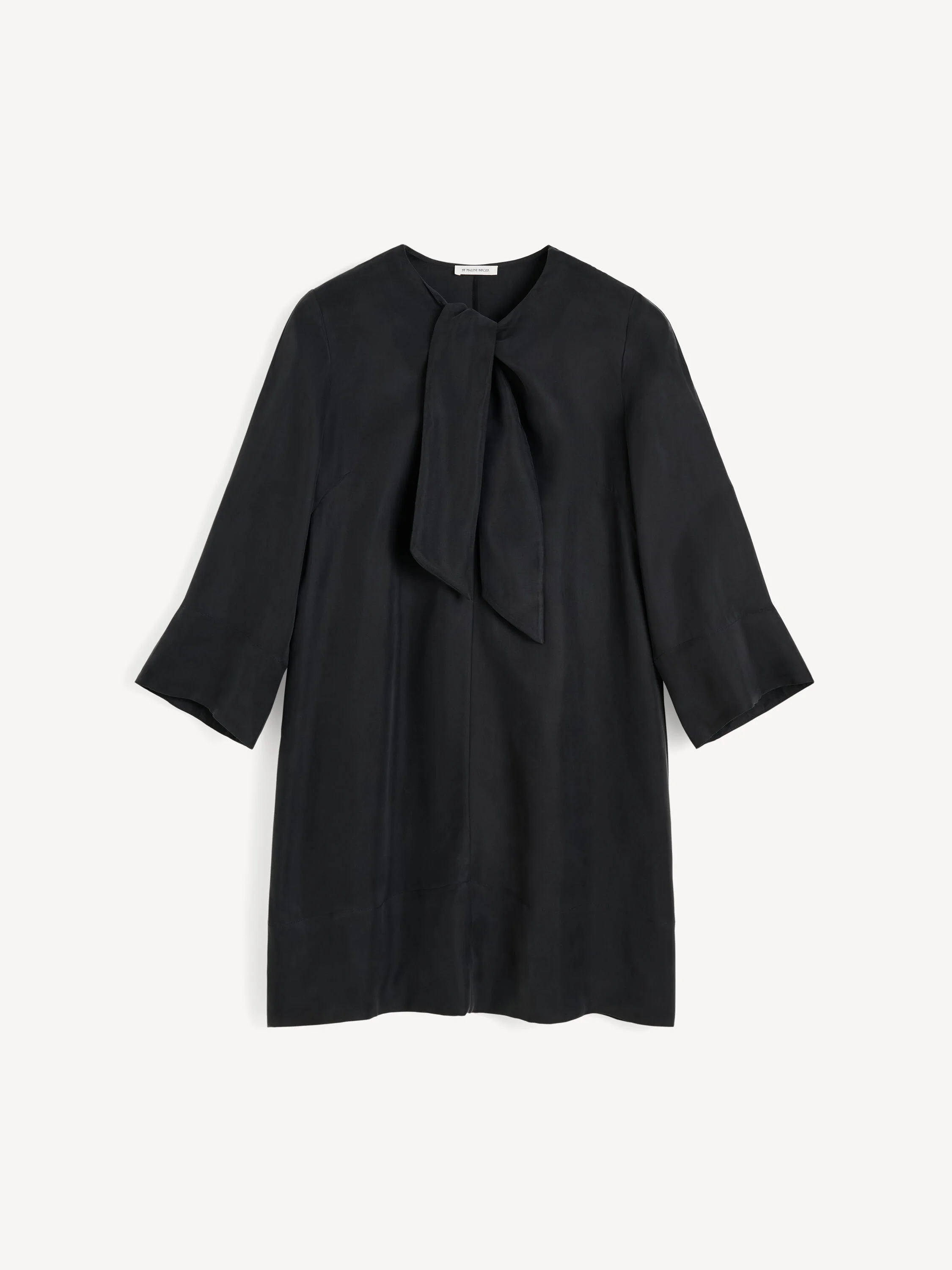 A mini dress that transitions easily from the office to the after-hours, the Javea design is made in a matte yet tactile fabrication. The straight silhouette is heroed by its V-neck fastens, that can be folded simply or tied as a bow. - Regular fit - Model is 178 cm and is wearing a size 36 - V-neck with ties - Straight silhouette - Cropped sleeves - Unlined DETAILS COLOUR Black COMPOSITION 57% cupro, 43% viscose CARE Hand wash PRODUCT CODE Style #103592050