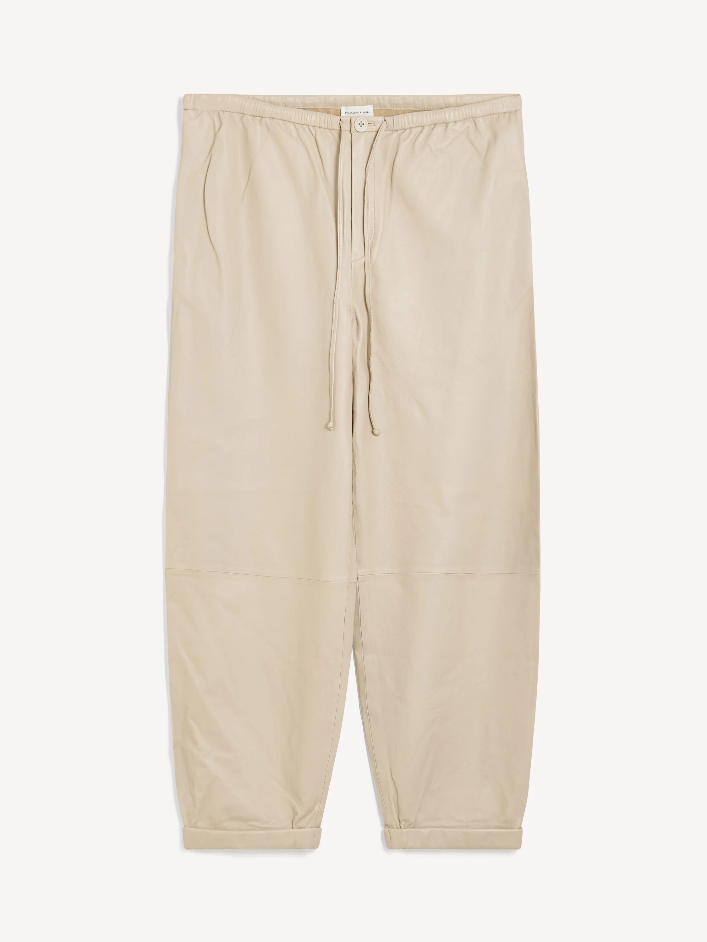 Relaxed charm defines the By Malene Birger Joanni trousers. Constructed from soft and supple lamb leather, the style features a high waist, cropped leg, zip and button closure, and a drawstring. Style it with an oversized wool sweater to run errands. - Loose fit - Model is 175 cm and is wearing a size 36 - By purchasing this product, you are supporting responsible leather manufacturing via the Leather Working Group - Zip and button fastening - Drawstring DETAILS COLOUR Cement COMPOSITION 100% lamb leather CARE Professional leather dry clean only PRODUCT CODE Style #10210513A