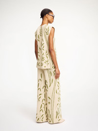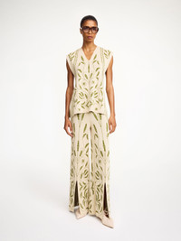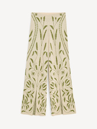 An ode to tranquil backyards and extravagant gardens, the Jorith trousers feature grasshopper green embroidered garden vines. The wide-leg design has a snug elastic waistband and front slits that reveal just a bit of leg. Wear with its matching Isolt vest. - Regular fit - Model is 179 cm and is wearing a size S - Elastic waistband - Front slits - Floral pattern - Contains LENZING™ ECOVERO™ viscose fibers - "LENZING™ and ECOVERO™ are trademarks of Lenzing AG DETAILS COLOUR Garden Jacquard COMPOSITION 87% viscose (lenzing (TM) ecovero (TM) ), 13% polyamide CARE Delicate machine wash at 30°c PRODUCT CODE Style #103330QJ2