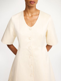 A well-curated wardrobe calls for styles that can be used for a number of occasions — such as the Josephine dress. Polished and ladylike, the mini design has an accentuated waist, faux button closure and a deep neckline. Use it as spring beckons as a layering piece, or on its own in summer. - Regular fit - Model is 179 cm and is wearing a size 36 - Faux button closure - Deep neckline - Accentuated waist - Zip and hook closure - Fully lined DETAILS COLOUR Pearl COMPOSITION 59% polyester, 41% cotton CARE Delicate machine wash at 30°c PRODUCT CODE Style #1034351EE