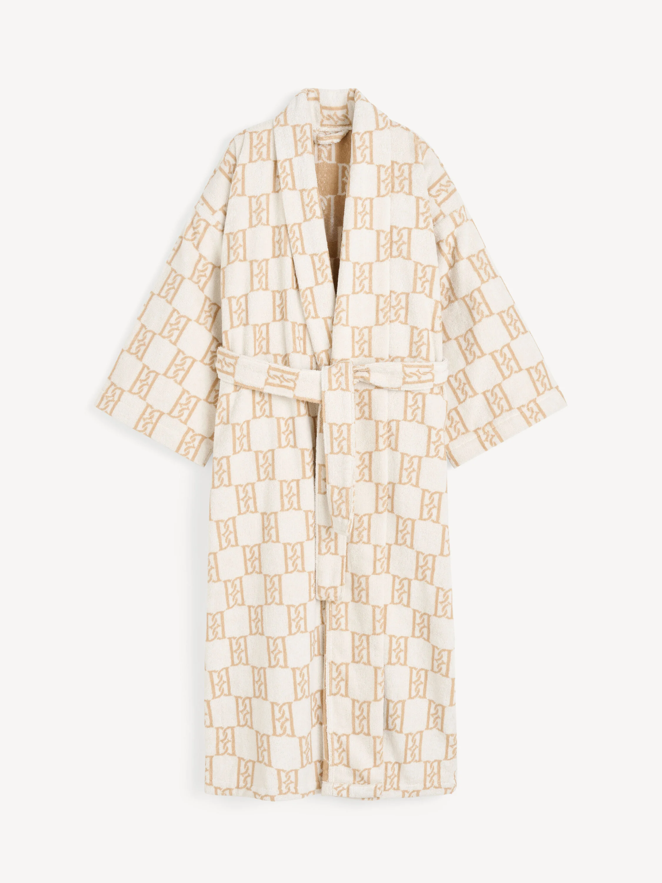 Inspired by the classic kimono silhouette, the Kimosa Robe design is equally suitable for weekends at home and soirees all year-round. The organic cotton kimono is fully covered in By Malene Birger’s monogram motif and has a detachable belt that makes it wearable in numerous ways. - Oversized fit - Classic kimono silhouette - Detachable belt - Monogram print DETAILS COLOUR Dark Sand Monogram COMPOSITION 100% cotton organic CARE Wash at 40°c PRODUCT CODE Style #103760QB4