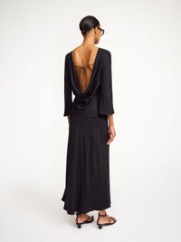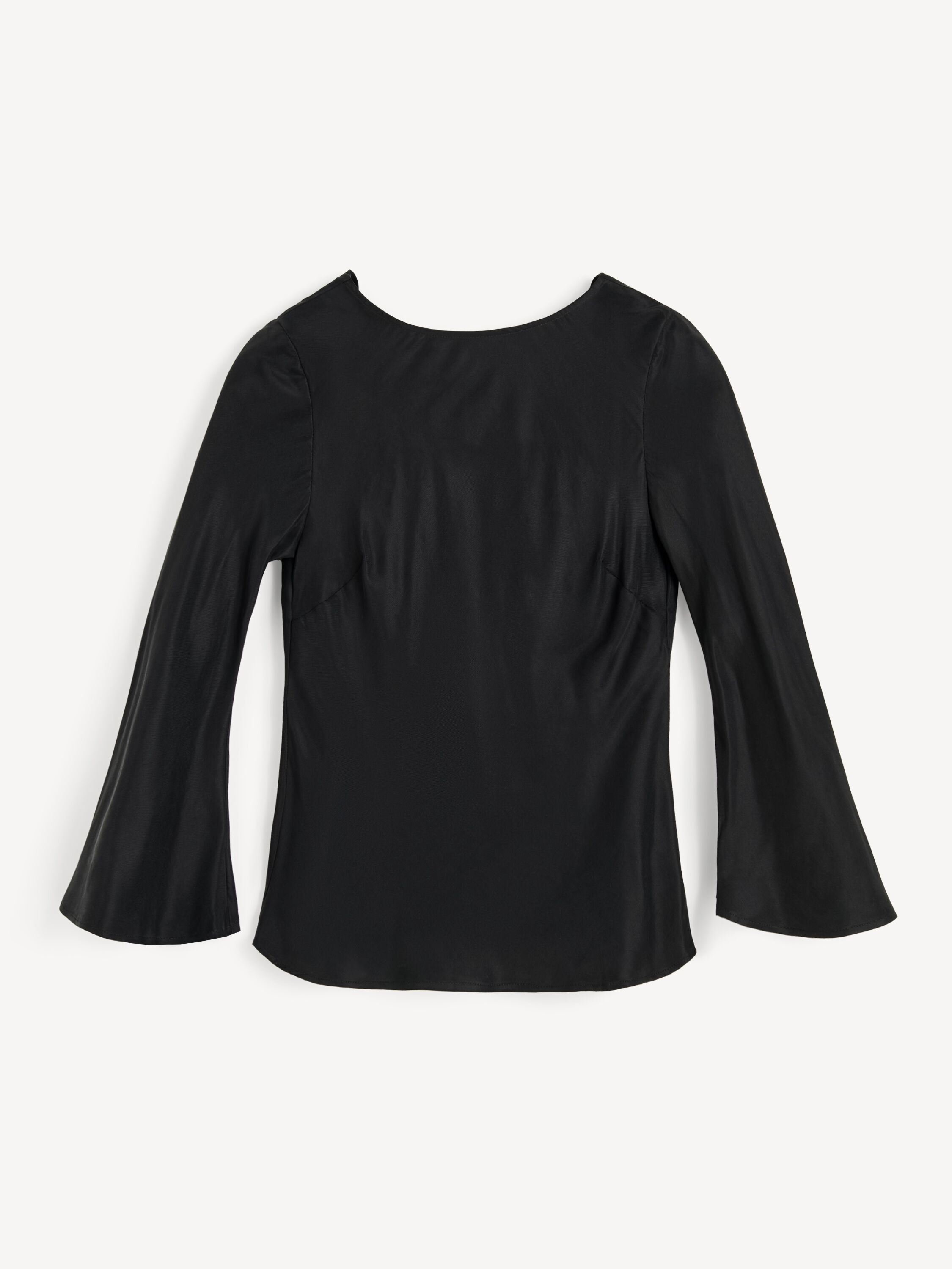 Soft to the touch and falling in a smooth drape down the back, the Laura blouse is a wardrobe staple you will wear for festivities on repeat. It’s detailed with adjustable ties that secure a proper fit. - Regular fit - Model is 179 cm and is wearing a size 36 - Low draped back - Adjustable ties - Flared sleeves DETAILS COLOUR Black COMPOSITION 57% cupro, 43% viscose CARE Hand wash PRODUCT CODE Style #103350050