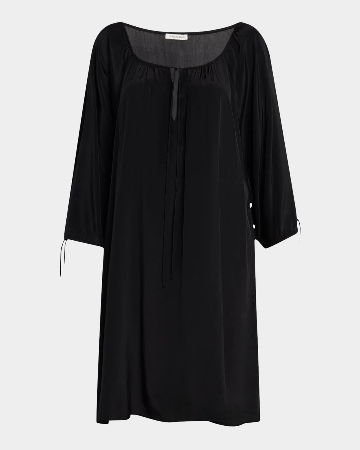 - By Malene Birger "Lauren" dress crafted in a fluid viscose-silk blend - Scoop neckline; keyhole front self-tie - 3/4 sleeves; self-tie cuffs - Hem hits around the knee - Shift silhouette - Slipover style - Viscose/silk - Dry clean - Imported