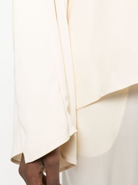 layered-details flared blouse light beige flared design layered details V-neck flute sleeves asymmetric hem Imported Composition Viscose 100% SIZE & FIT Model measurements Height 5 ft 9 in(1.76 m) Bust/Chest 33.07 in(84 cm) Hips 38.58 in(98 cm) Waist 24.8 in(63 cm) FittingInformation Designed to be unstructured, offering a loose fit throughout Made from a midweight non-stretch fabric This piece fits true to size – take your usual size Washing instructions Hand Wash