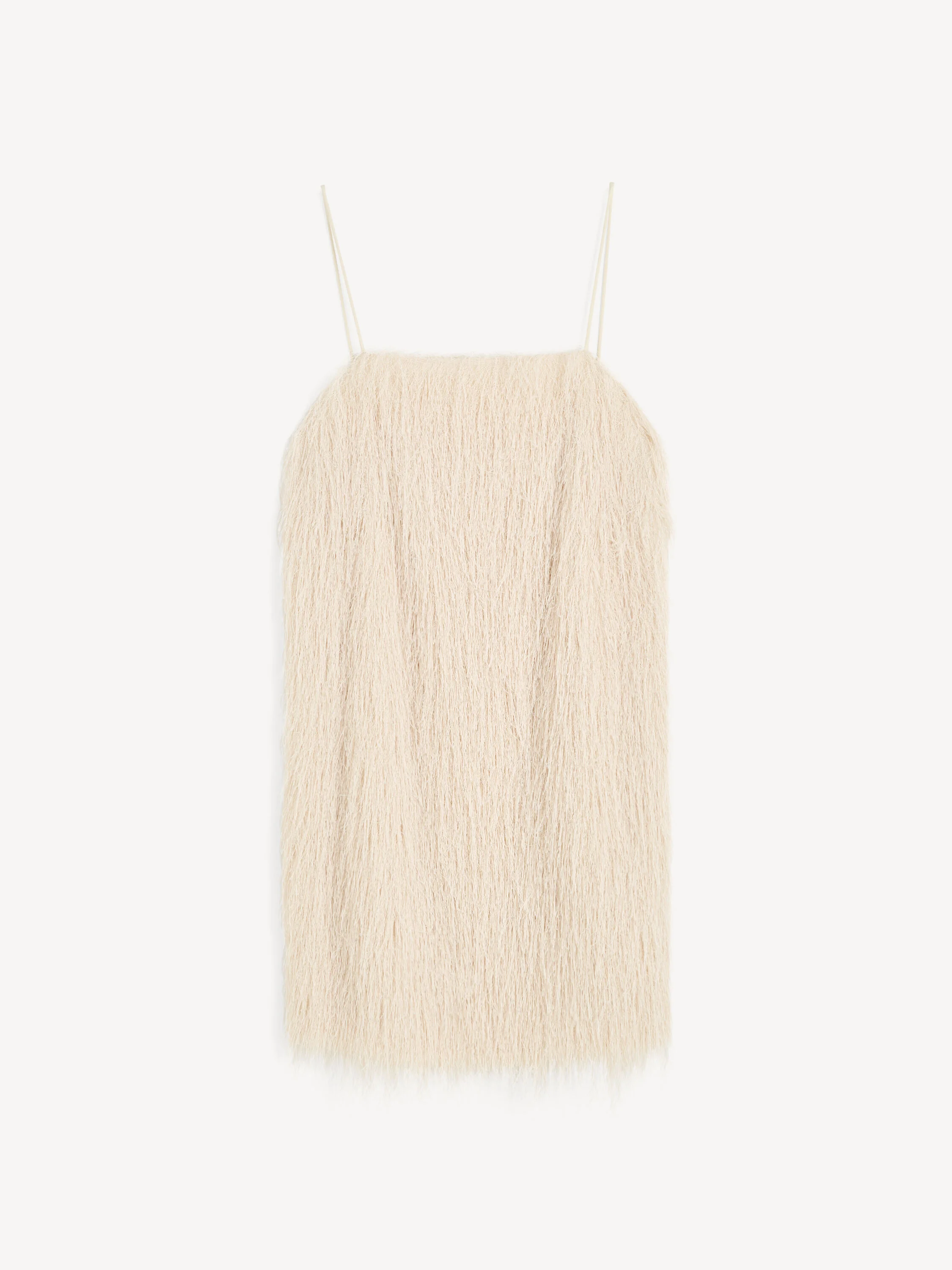 Fringes galore define the Ledo dress. Set on a minimalistic silhouette, the mini design has a straight neckline and straps that are adjusted at the back. How to complete the look? Wear with the matching Pinla cape. - Regular fit - Model is 177 cm and is wearing a size 36 - Plush fringes - Adjustable straps - Straight neckline DETAILS COLOUR Wood COMPOSITION 100% polyester CARE No Wash PRODUCT CODE Style #1035371U3