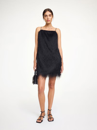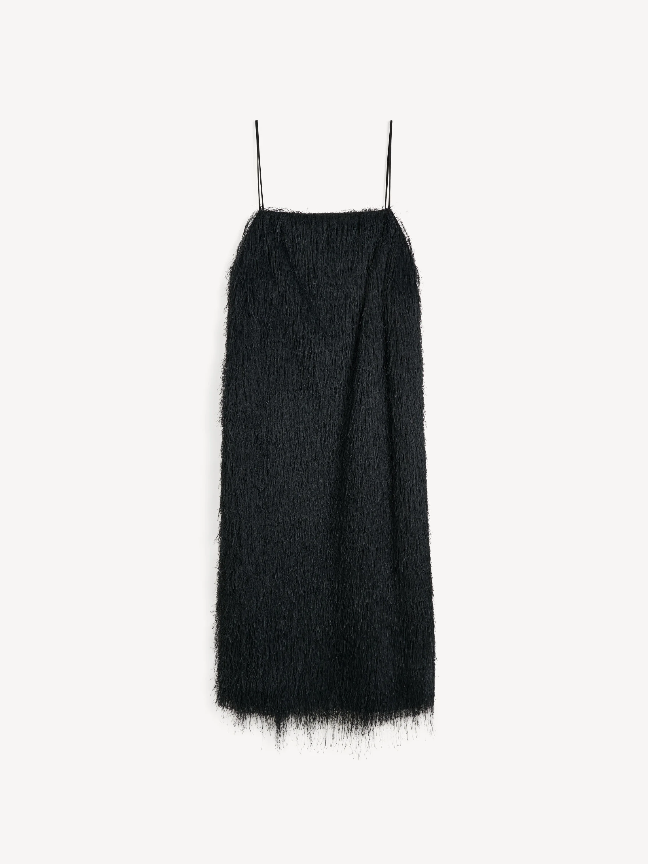 Eclectic with a hint of drama, the Ledo dress is designed for the after-hours. Set on a minimalistic silhouette with a straight neckline, the fully lined mini design is covered in lingering fringes that sway as you go. Wear on its own with a pair of low heels or layered over a white shirt. - Regular fit - Model is 178 cm and is wearing a size 36 - Straight neckline - Straight silhouette - Fully lined - Adjustable straps DETAILS COLOUR Black COMPOSITION 100% polyester CARE No Wash PRODUCT CODE Style #103615050