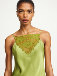 Slip right into the delicate Leeba top. Made to wear as a layering piece both day and night, the minimal design features lace details and adjustable straps. - Slim fit - Model is 179 cm and is wearing a size 36 - Adjustable straps - Lace detailing DETAILS COLOUR Grasshopper COMPOSITION 76% acetate, 24% polyester CARE Delicate machine wash at 30°c PRODUCT CODE Style #1022864Z8