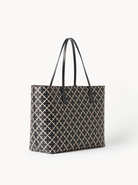 Patterned with By Malene Birger's Signature Flower print, this mid-sized tote bag is perfect for storing your everyday essentials. The spacious, leather-trimmed style is finished with practical carry handles, an adjustable closure and interior pocket. - Leather trim - Interior pocket - 48 x 28 x 12.5cm DETAILS COLOUR Black COMPOSITION 100% polyvinyl chloride CARE Clean with damp cloth PRODUCT CODE Style #101741050