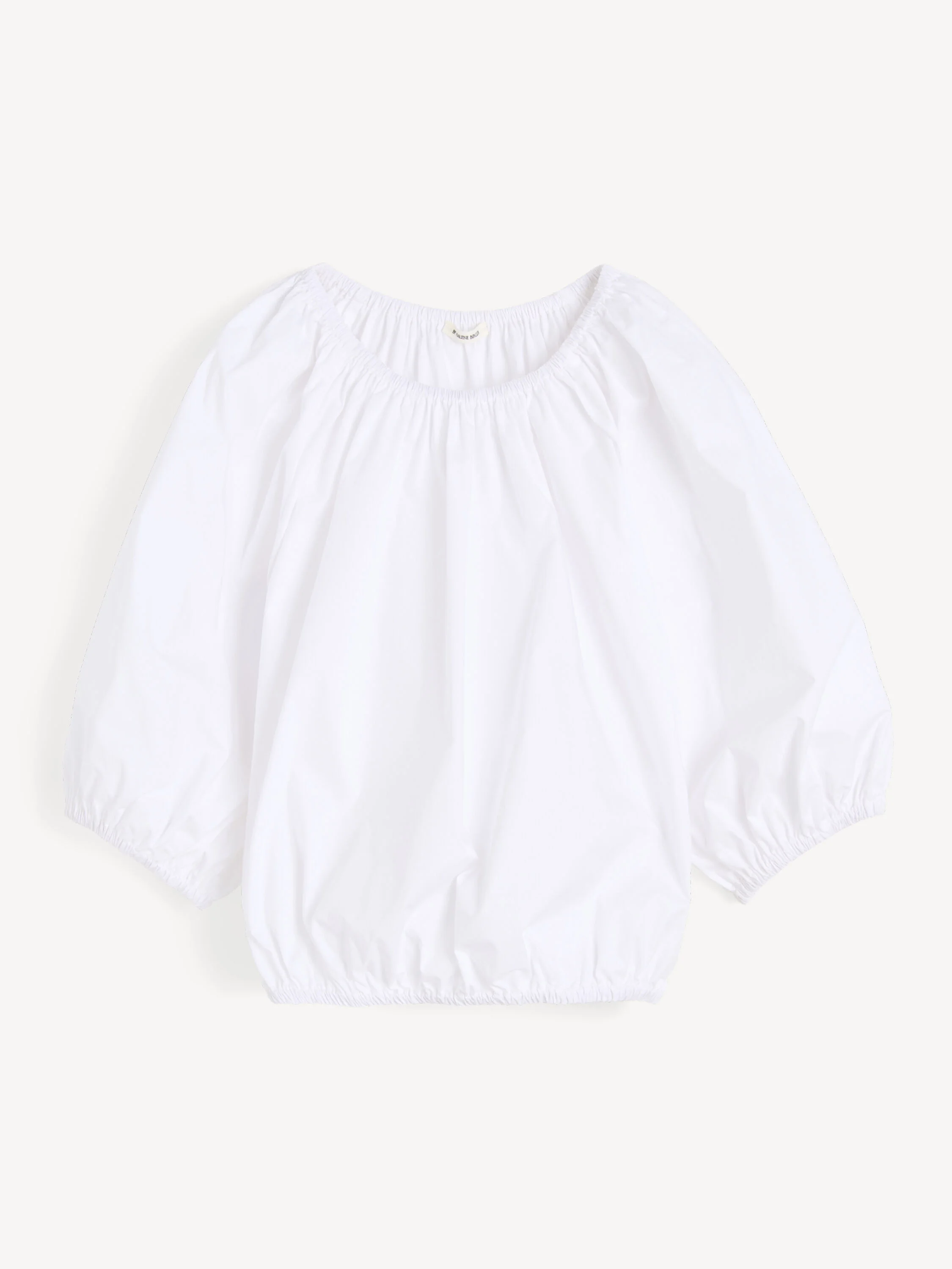 The crisp organic cotton and voluminous shape define the Lelow blouse. The loose silhouette is tempered by elastic bands in both cuffs, hem and neckline – which can be styled on or off shoulder depending on your mood. - Loose fit - Model is 179 cm and is wearing a size 36 - Elastic hem - Elastic neckline DETAILS COLOUR Pure White COMPOSITION 100% cotton organic CARE Wash at 30°c PRODUCT CODE Style #103272090