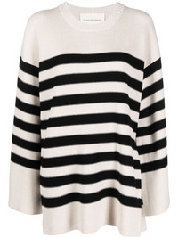 Leon striped ribbed-knit jumper BY MALENE BIRGER infuses this Leon jumper with its Scandi-influenced aesthetic. Crafted from stretch wool in an oversized fit, the garment is defined by its horizontal stripe pattern. Highlights - White/black - Merino wool blend - Ribbed knit - Horizontal stripe print - Round neck - Long wide sleeves - Straight hem Imported Composition Merino 94%, Elastane 6% SIZE & FIT Measurement SLEEVE LENGTH 18.89 in(48 cm) Shoulder Width 19.68 in(50 cm) LENGTH 28.74 in(73 cm) BUST 40.15 in(102 cm) Washing instructions Hand Wash