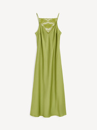 Add a sense of modern bohemia to your year-round wardrobe with the Libbie dress. The maxi design is made in satin and decorated with a delicate lace at the chest. Layer underneath the Pinlos cape for festivities, and it will become a favourite for seasons – and years – to come. - Regular fit - Model is 179 cm and is wearing a size 36 - Lace detailing - Straight silhouette - Adjustable straps - Eastman Naia™ is a cellulosic fibre produced from responsibly sourced wood pulp. It is quick drying, biodegradable, supremely soft and comfortable to wear DETAILS COLOUR Grasshopper COMPOSITION 85% acetate, 15% polyester CARE Delicate machine wash at 30°c PRODUCT CODE Style #1034034Z8