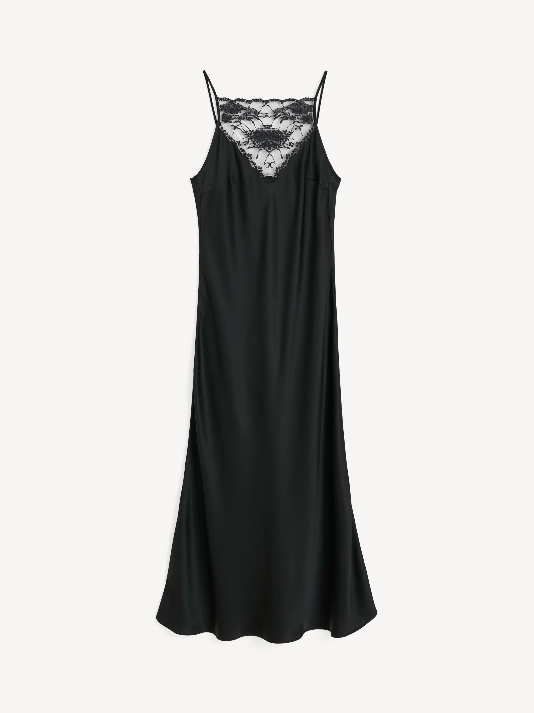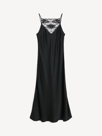 Add a sense of modern bohemia to your year-round wardrobe with the Libbie dress. The maxi design is made in satin and decorated with a delicate lace at the chest. Layer underneath the Pinlos cape for festivities, and it will become a favourite for seasons – and years – to come. - Regular fit - Lace detailing - Straight silhouette - Adjustable straps - Eastman Naia™ is a cellulosic fibre produced from responsibly sourced wood pulp. It is quick drying, biodegradable, supremely soft and comfortable to wear DETAILS COLOUR Black COMPOSITION 85% acetate, 15% polyester CARE Delicate machine wash at 30°c PRODUCT CODE Style #103403050