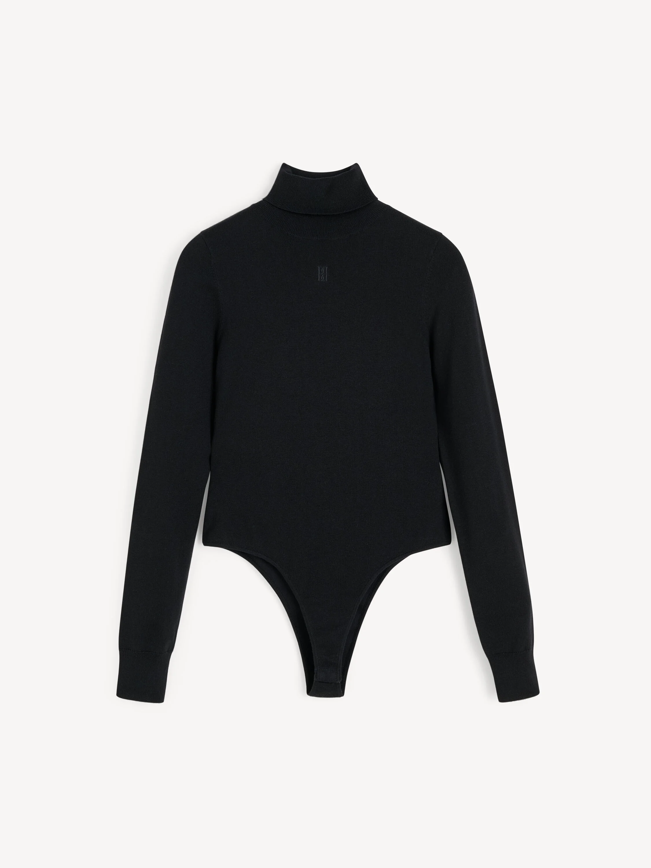 Dressing for the coldest months doesn’t have to all about voluminous sweaters. Opt for the Lilje bodystocking to add a slim-fitting element to your winter edit. Made in a soft wool and silk mix, the turtleneck design closes with a click button and has a discreet embroidered monogram on its front. - Regular fit - Click button closure - Turtleneck - Embroidered monogram - Contains TENCEL™ Lyocell fibers - TENCEL™ is a trademarks of Lenzing AG - This product contains 27% RWS wool, certified by Control Union, CU 877742. The Responsible Wool standard (RWS) verifies animal welfare and land management requirements and tracks it from the farm to the final product DETAILS COLOUR Black COMPOSITION 51% lyocell (tencel (TM)), 27% wool, 7% silk, 15% elastane CARE Hand wash PRODUCT CODE Style #103763050