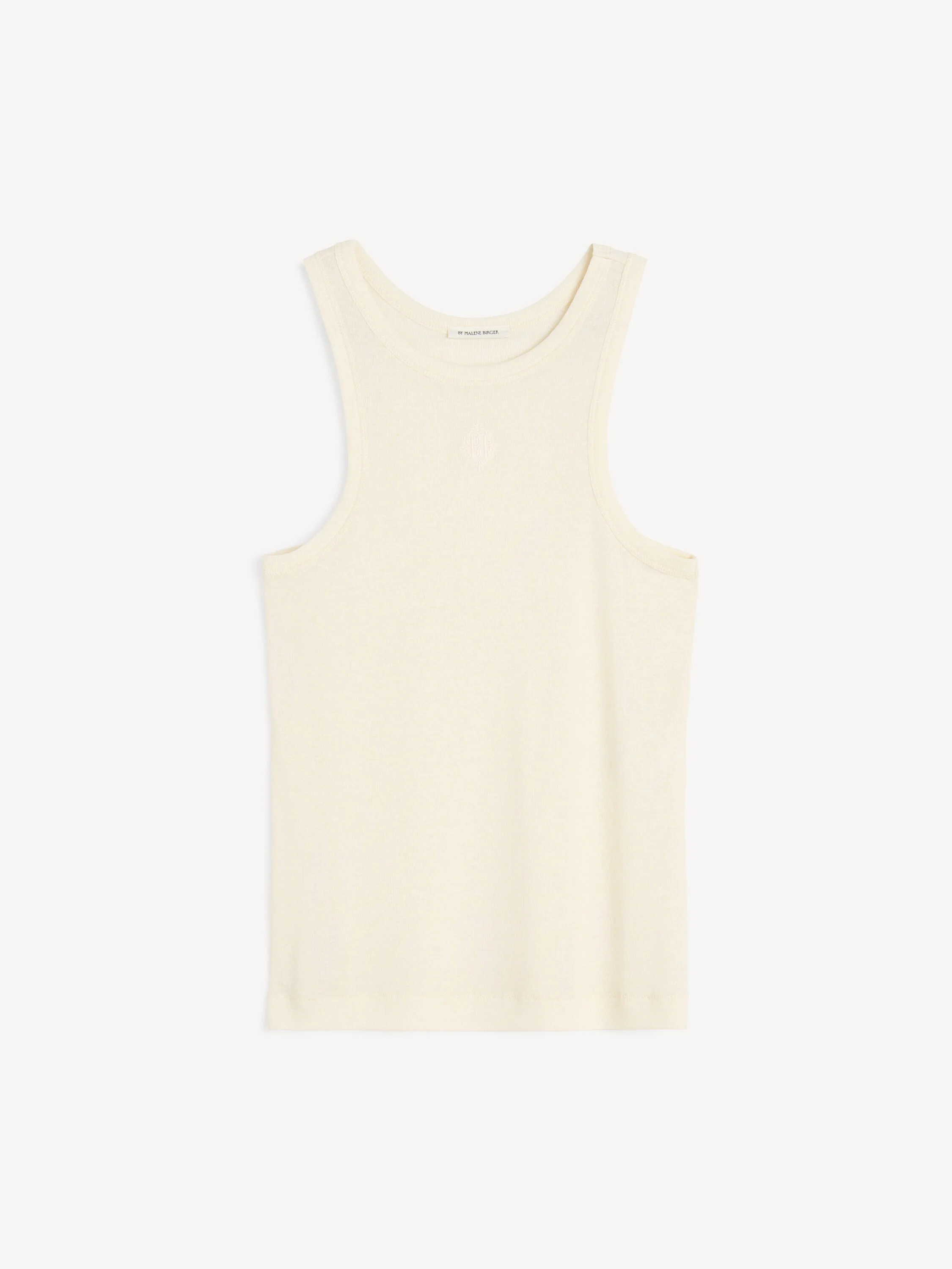 A versatile and timeless staple, the Lise tank top is made in a breathable and slightly sheer fabrication. Designed with a racer front and back, it’s decorated with a distinct monogram right on the chest. Wear as a layering piece as spring beckons or on its own in summer. - Regular fit - Model is 179 cm and is wearing a size S - Sheer fabrication - Embroidered monogram - Racer front and back - Contains TENCEL™ Lyocell fibers - TENCEL™ is a trademarks of Lenzing AG DETAILS COLOUR Soft White COMPOSITION 80% lyocell (tencel (TM)), 20% hemp organic CARE Delicate machine wash at 30°c PRODUCT CODE Style #10332603Z