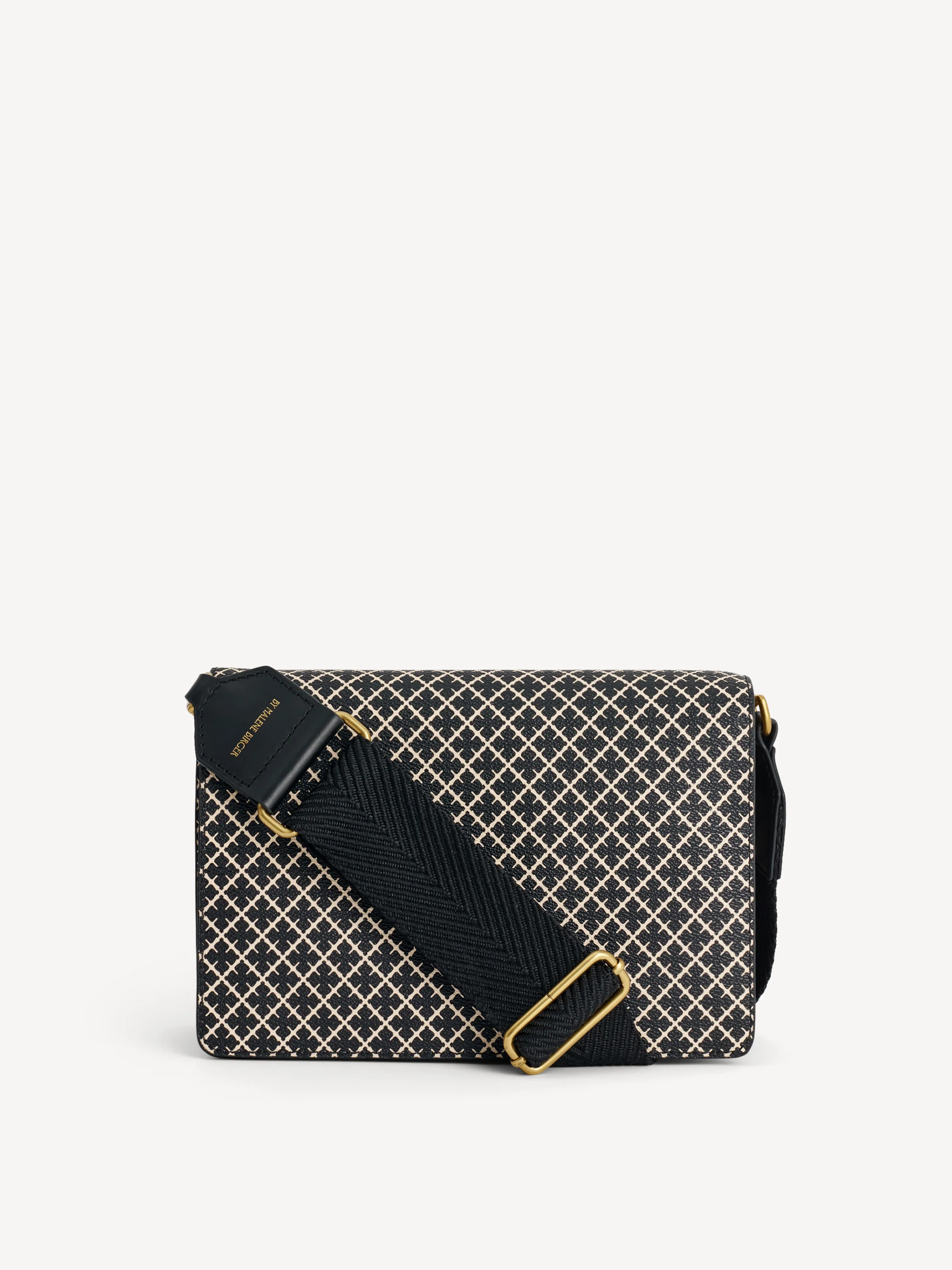Crafted from durable fabric printed with our Signature Flower motif, this versatile bag is stamped with the house insignia on the strap and trimmed with leather. It has an adjustable strap in cotton webbing to ensure the perfect fit. - Magnetic flap closure - Adjustable shoulder strap - Leather trim - Gold hardware - Strap length 109 cm - 24 x 17 x 8.5 cm DETAILS COLOUR Black COMPOSITION 100% polyvinyl chloride CARE Clean with damp cloth PRODUCT CODE Style #101780050