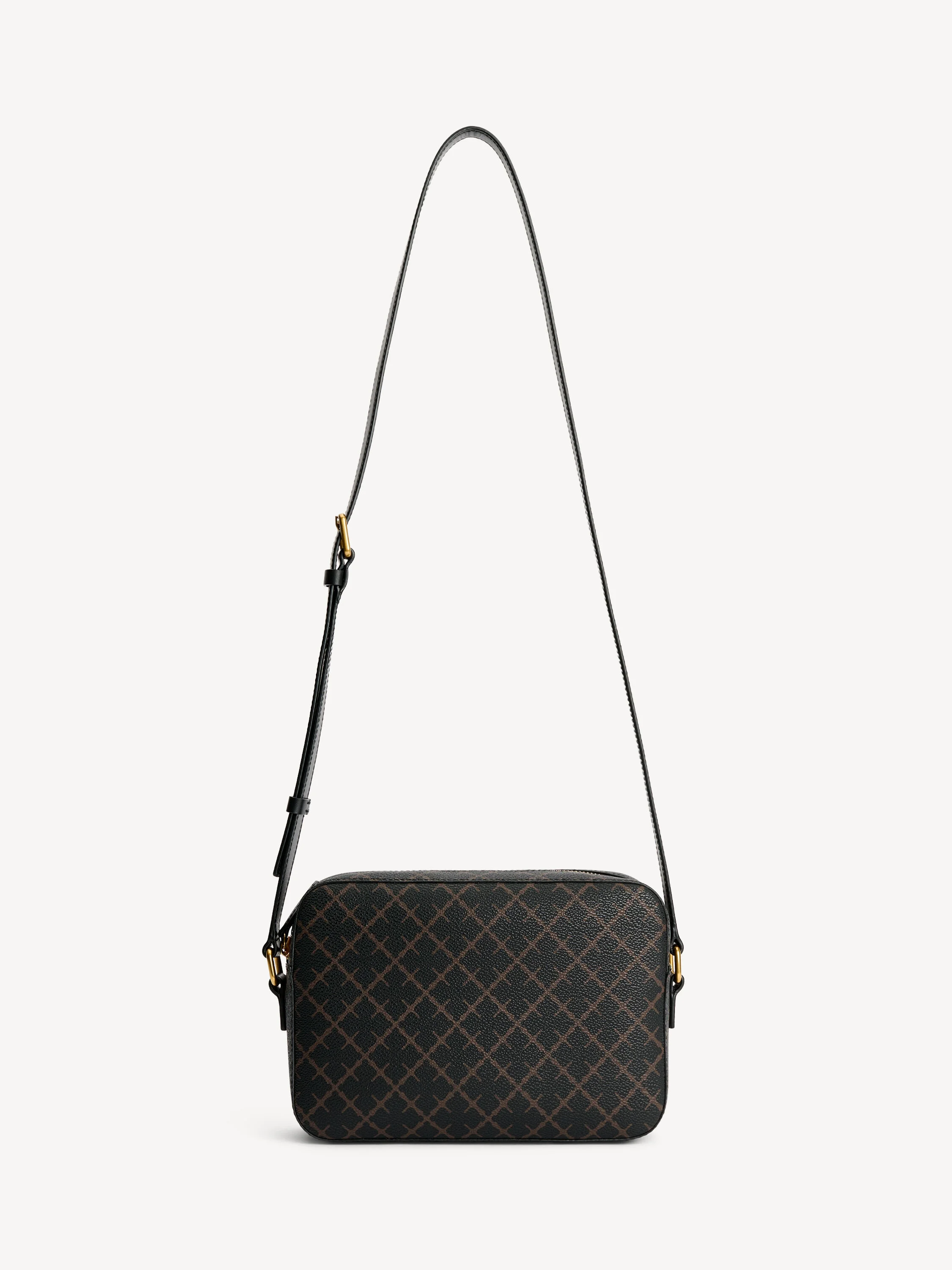 Compact and practical, the Lolla crossbody bag is adorned with By Malene Birger’s Signature Flower motif. Designed with 1 big zip compartment and a discreet sleeve pocket on the outside, it offers smart organization in a sleek silhouette. The adjustable strap ensures versatile wear for everyday use. - Signature flower print - Adjustable strap - Gold hardware - Leather details - 23 x 16 x 6,5 cm DETAILS COLOUR Dark Chokolate COMPOSITION 100% polyvinyl chloride CARE Clean with damp cloth PRODUCT CODE Style #103868147