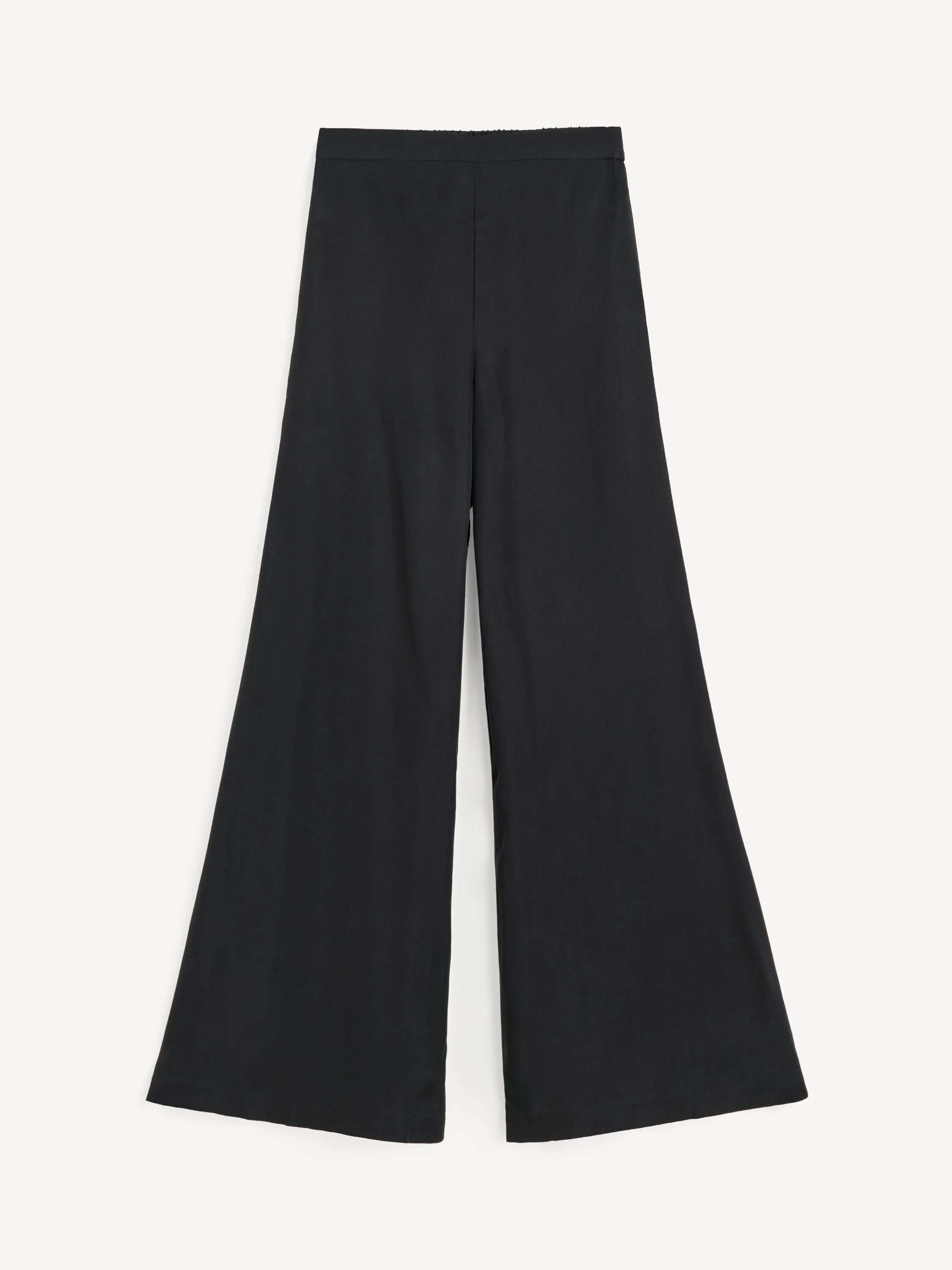 Made to be worn for both desk, dinner – and beyond, the Lucee Cupro trousers are as comfortable as they are chic. The flared wide-leg silhouette sits on a high – and snug – elastic waist. Wear with fitted blazers and eclectic blouses alike. - Regular fit - Model is 177 cm and is wearing a size 36 - Elastic waist - Side pockets - Wide flared legs DETAILS COLOUR Black COMPOSITION 57% cupro, 43% viscose CARE Hand wash PRODUCT CODE Style #103850050