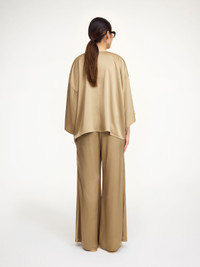 By Malene Birger Lucee trousers woven from a fluid blend that sweeps into a flared leg. They're designed for a high waist and a regular fit which makes them ideal to style with a cropped top and heels for special occasions. - Regular fit - Eastman Naia™ is a cellulosic fibre produced from responsibly sourced wood pulp. It is quick drying, biodegradable, supremely soft and comfortable to wear - Flared leg DETAILS COLOUR Kelp COMPOSITION 85% acetate, 15% polyester CARE Delicate machine wash at 30°c PRODUCT CODE Style #1025531Y7