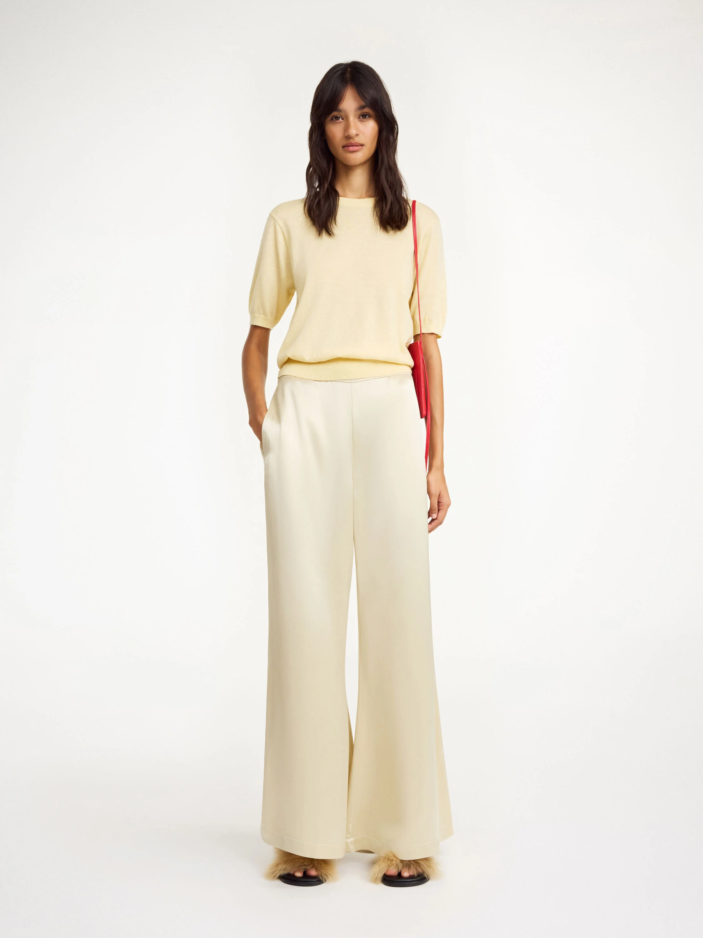 By Malene Birger Lucee trousers woven from a fluid blend that sweeps into a flared leg. They're designed for a high waist and a regular fit which makes them ideal to style with a cropped top and heels for special occasions. - Regular fit - Model is 175 cm and is wearing a size 36 - Eastman Naia™ is a cellulosic fibre produced from responsibly sourced wood pulp. It is quick drying, biodegradable, supremely soft and comfortable to wear - Flared leg DETAILS COLOUR Oyster Gray COMPOSITION 76% acetate, 24% polyester CARE Delicate machine wash at 30°c PRODUCT CODE Style #1020161CT
