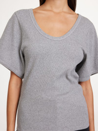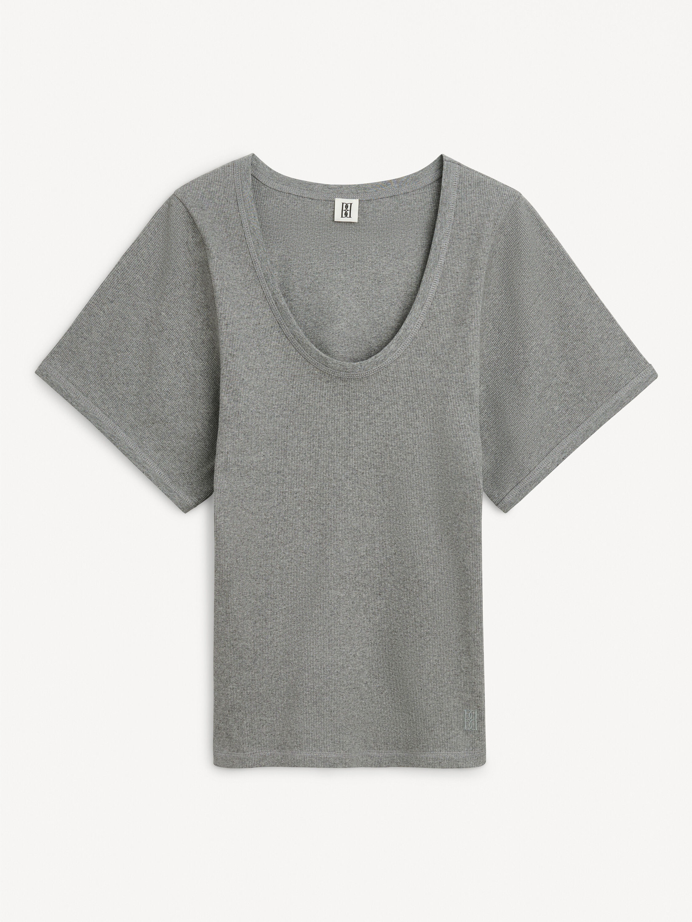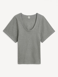 The Lunai T-shirt is an elevated version of a classic t-shirt. The design is crafted from a stretchy organic cotton blend with a deep neck, dropped shoulders, and wide sleeves followed by a semi-slim shape. Wear it with jeans for an easy daytime look. - Regular fit - Model is 174 cm and is wearing a size S - Curved neck - Short sleeves DETAILS COLOUR Grey Melange COMPOSITION 98% cotton organic, 2% elastane CARE Wash at 30°c PRODUCT CODE Style #101352T5M