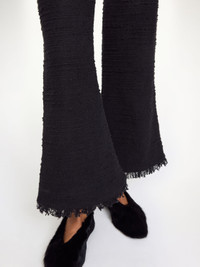 A chic and classic addition to your edit, the Mafaldana Boucle trousers are made in a tactile cotton mix. The cropped design is detailed with side and back pockets, fringe hems and a zip, hook and button closure. Wear with its coordinating Diana blouse. - Regular fit - Model is 178 cm and is wearing a size 36 - Cropped length - Zip, hook and button closure - Side pockets - Back pockets - Fringe hems DETAILS COLOUR Black COMPOSITION 97% cotton, 2% polyamide, 1% polyester CARE No Wash PRODUCT CODE Style #103596050