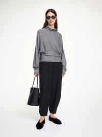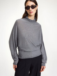 No wardrobe is complete without a simple and warm turtleneck – such as the Maggali sweater. Made in a wool and silk mix, the design has dolman sleeves and discrete rib hems. Wear with everything in your edit as the temperatures drop. - Loose fit - Model is 177 cm and is wearing a size S - Dolman sleeves - Turtleneck - Rib hems - Contains TENCEL™ Lyocell fibers - TENCEL™ is a trademarks of Lenzing AG - This product contains 32% RWS wool, certified by Control Union, CU 877742. The Responsible Wool standard (RWS) verifies animal welfare and land management requirements and tracks it from the farm to the final product DETAILS COLOUR Grey Melange COMPOSITION 60% lyocell (tencel (TM)), 32% wool, 8% silk CARE Hand wash PRODUCT CODE Style #103495T5M