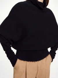 Knitted from a warm wool and yak blend, the Magosa turtleneck sweater is designed with delicate ribbed hems and sleeves. A refined layering piece, it brings soft structure and minimalist ease to transitional dressing. Wear with tailored trousers or fluid skirts. - Regular fit - Model is 177 cm and is wearing a size S - Ribbed hems - Loose fit - Turtle neck - This product contains 82 % RWS wool, certified by Control Union, CU 877742. The Responsible Wool standard (RWS) verifies animal welfare and land management requirements and tracks it from the farm to the final product DETAILS COLOUR Black COMPOSITION 82% wool, 14% yak, 4% elastane CARE Hand wash PRODUCT CODE Style #103295050