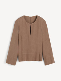 A minimalist blouse, such as the Malukka design, will truly last seasons – and years – to come. The straight silhouette is detailed with a low cut-out neckline, a hook and clasp closure, and side slits. Make the styling hassle-free – pair with the coordinating Lucee trousers. - Regular fit - Model is 177 cm and is wearing a size 36 - Contains LENZING™ ECOVERO™ viscose fibers - "LENZING™ and ECOVERO™ are trademarks of Lenzing AG - Low cut-out neckline - Hook and clasp closure - Side slits DETAILS COLOUR Chocolate Chip COMPOSITION 65% viscose (lenzing (TM) ecovero (TM) ), 35% viscose CARE Hand wash PRODUCT CODE Style #10365611A